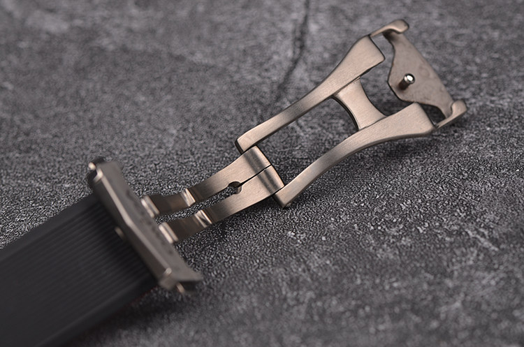 表壳:钛金属表壳及折叠表扣, 哑光黑色陶瓷单向旋转表圈