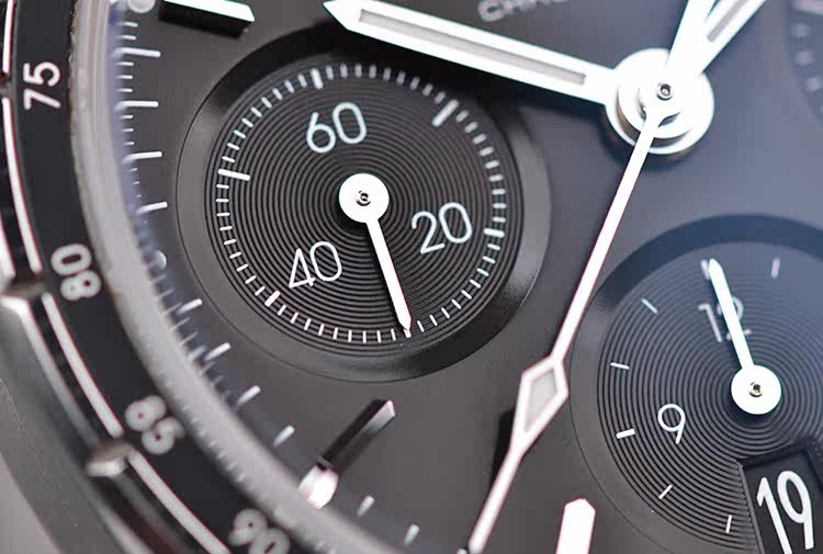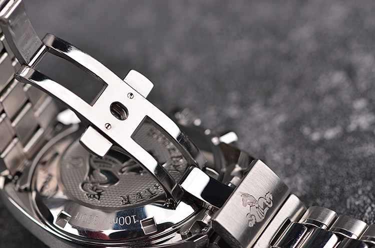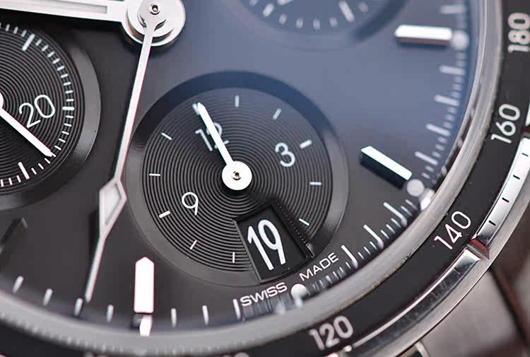 表盘: 立体黑色计时表盘,夜光时标及指针,日历显示