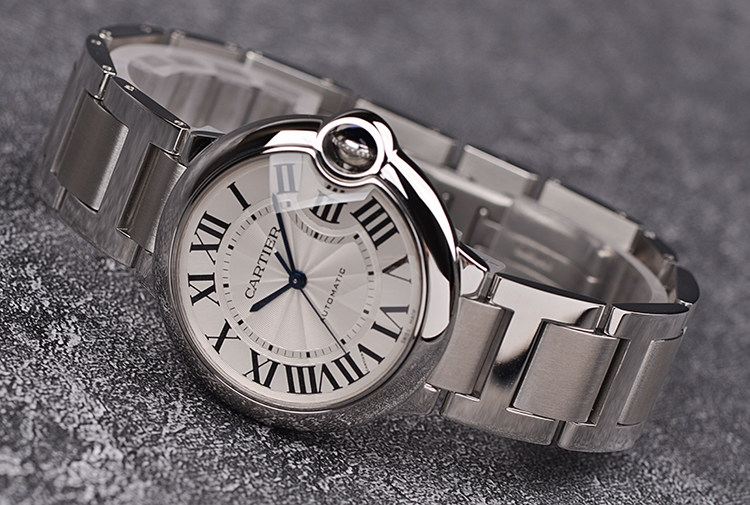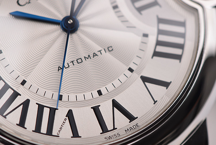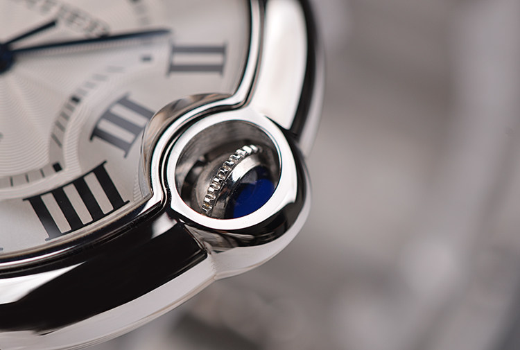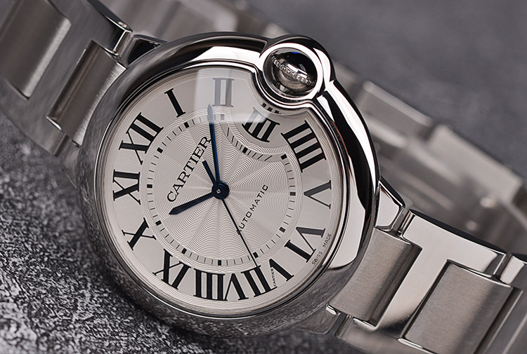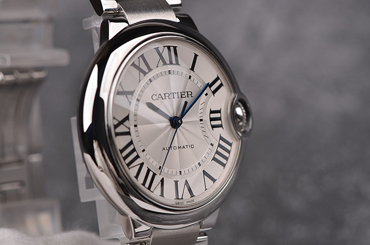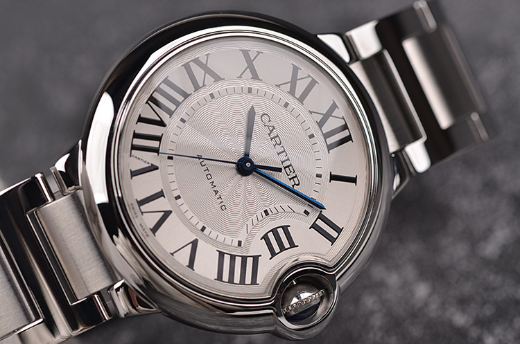 表盘:立体银白色表盘,蓝钢指针,黑色罗马数字刻度
