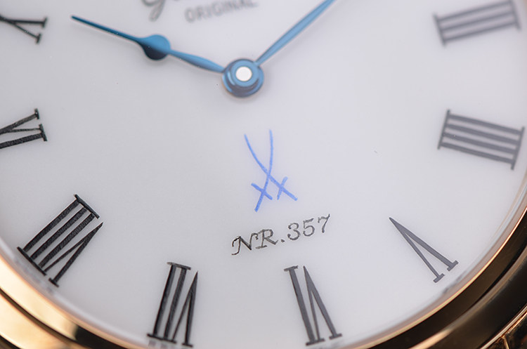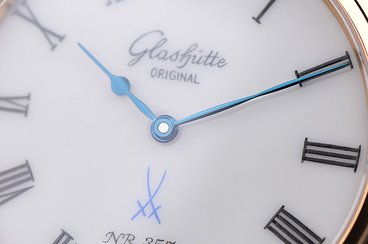 表盘:著名梅森瓷面盘,罗马数字刻度,蓝钢桃心指针