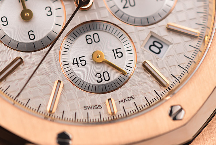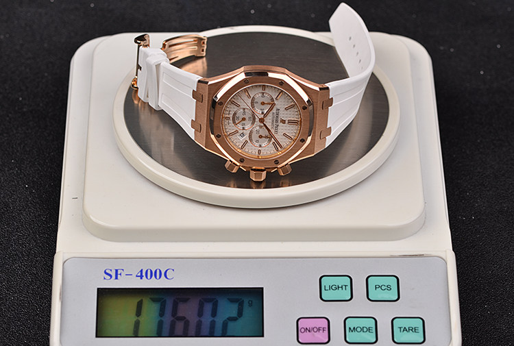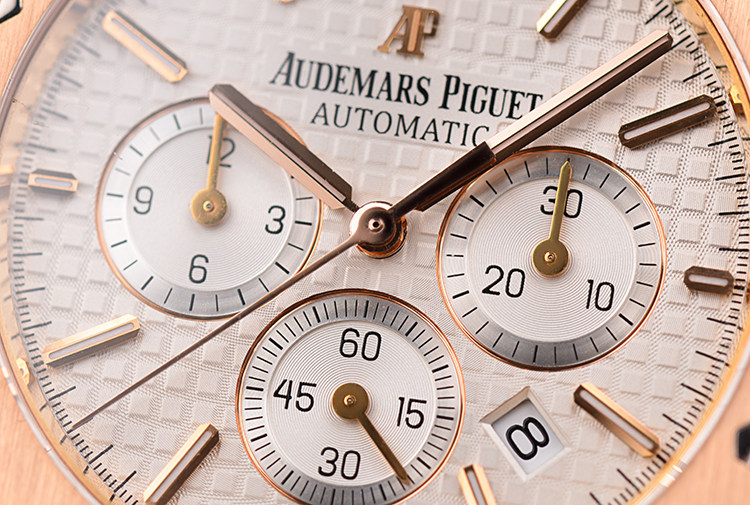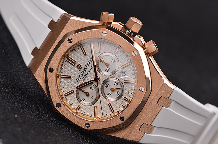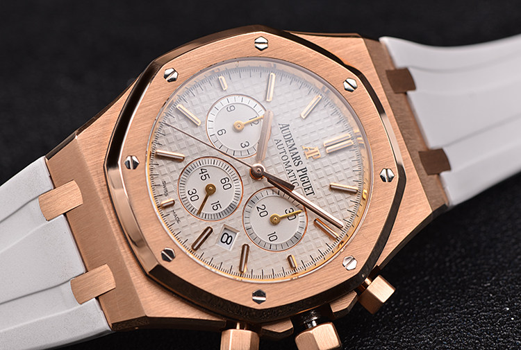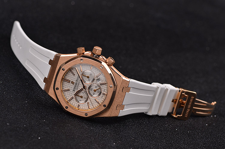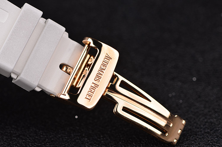 皇家橡树系列玫瑰金白面计时日历41MM自动折叠扣男表