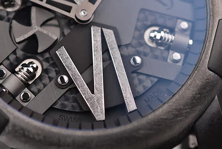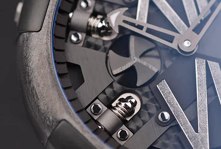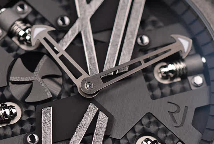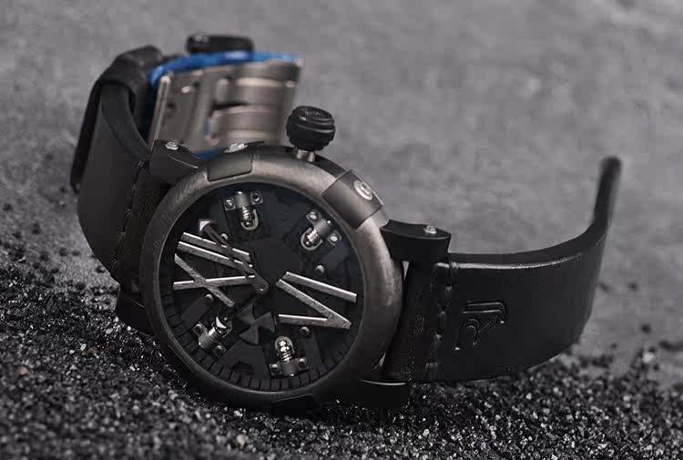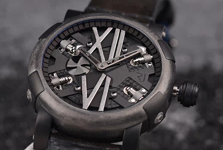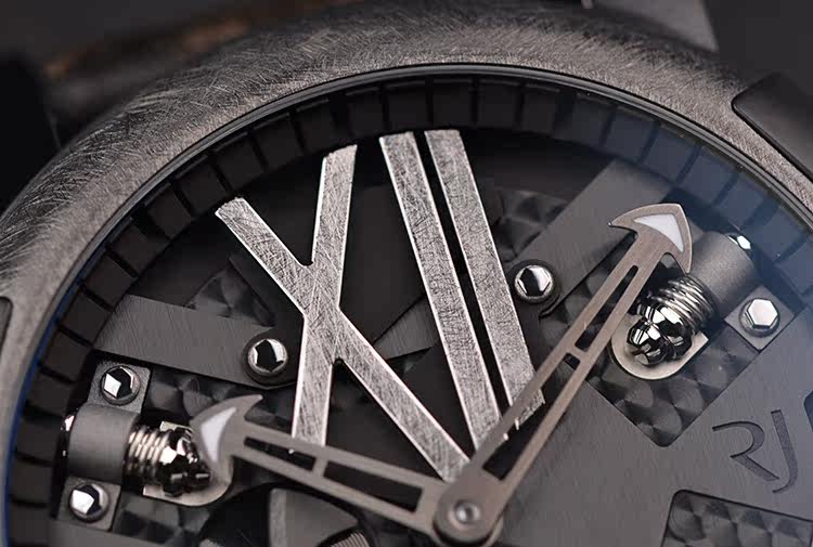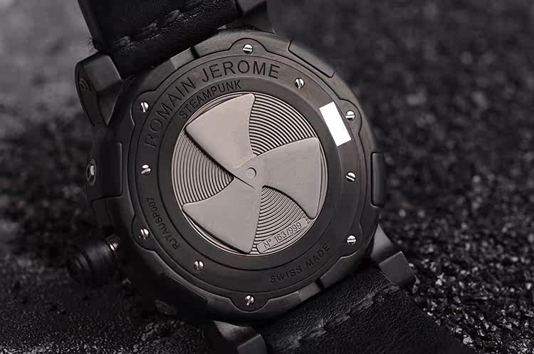 表盘:立体黑色表盘,手工拉丝罗马数字刻度,螺旋桨小秒针