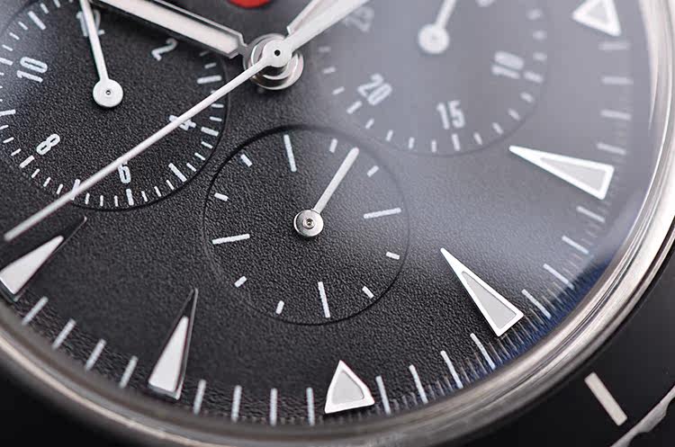 表盘:立体黑色计时表盘,夜光刻度及时分针