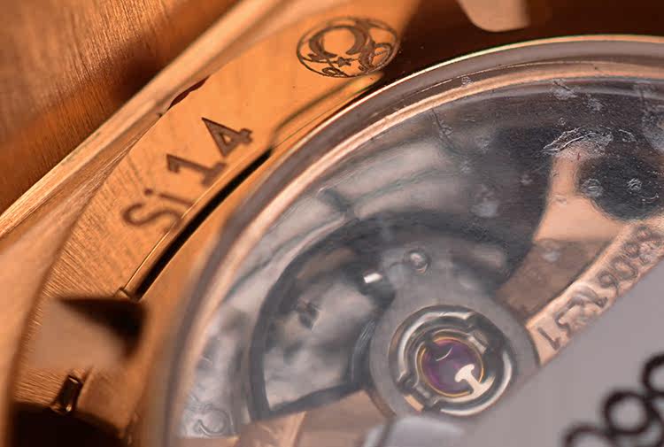 机芯:自动机械CAL.8521,玫瑰金自动陀及摆轮夹板,50小时动力储备