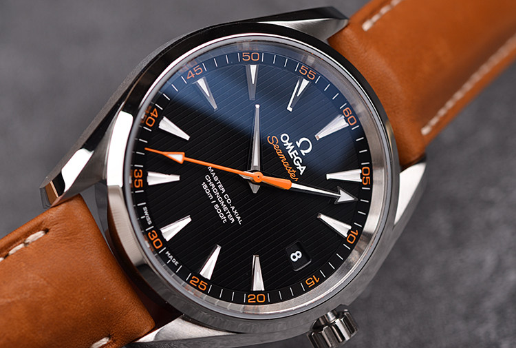 表盘:立体黑色“柚木条纹”表盘,夜光刻度及指针,橙色秒针,日历显示