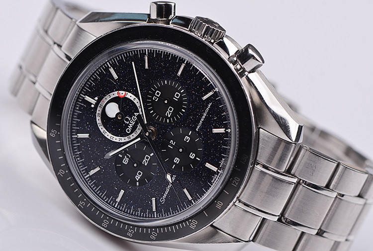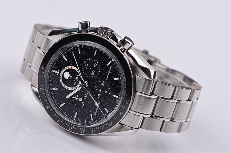 超霸登月系列沙金石面44MM专业计时1866机芯手上链钢带男表