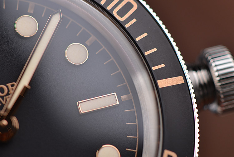 表壳:精钢表壳,黑色单向可旋转阳极氧化铝字计时表圈