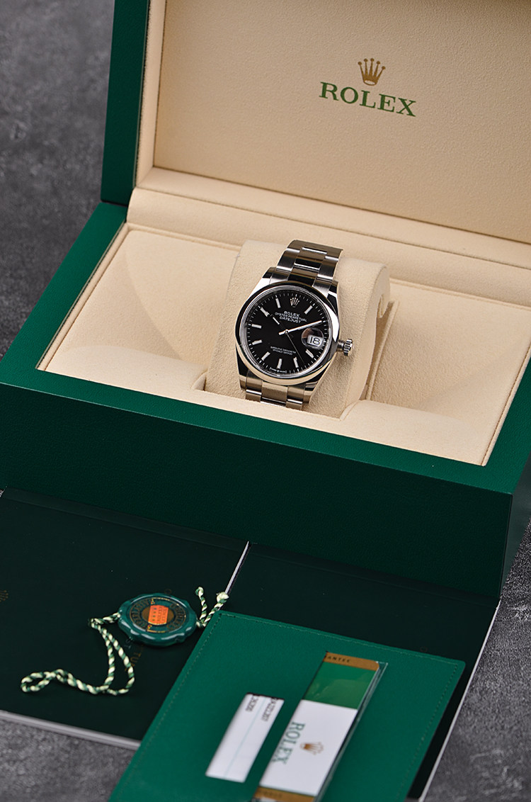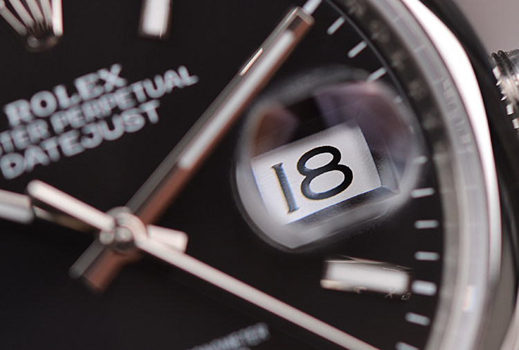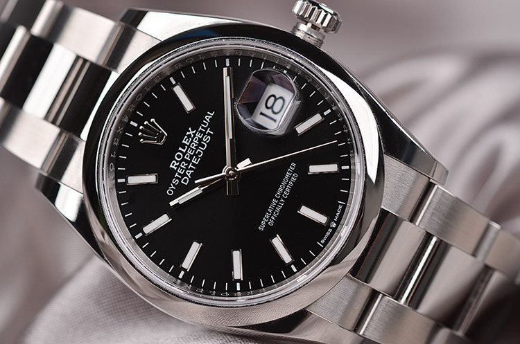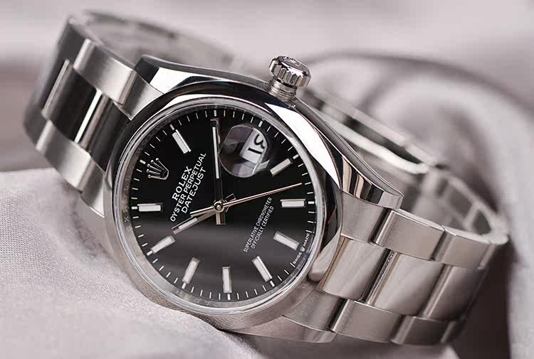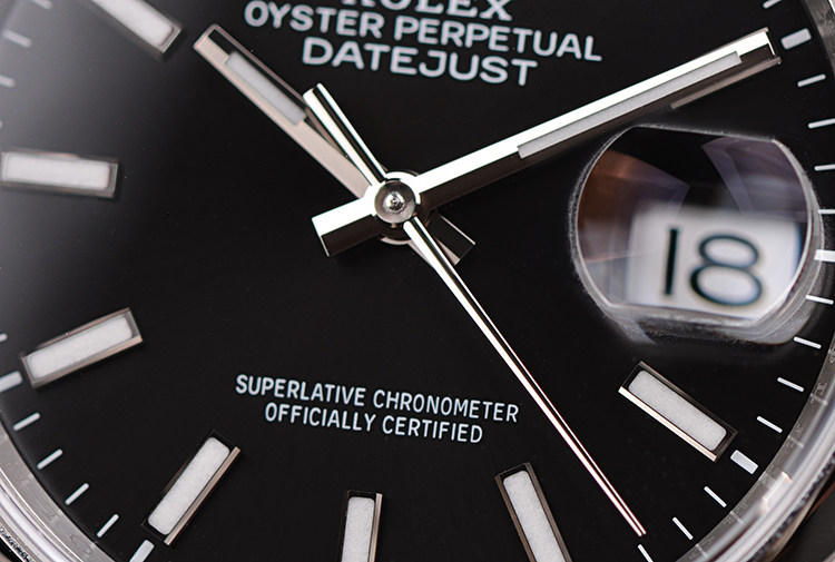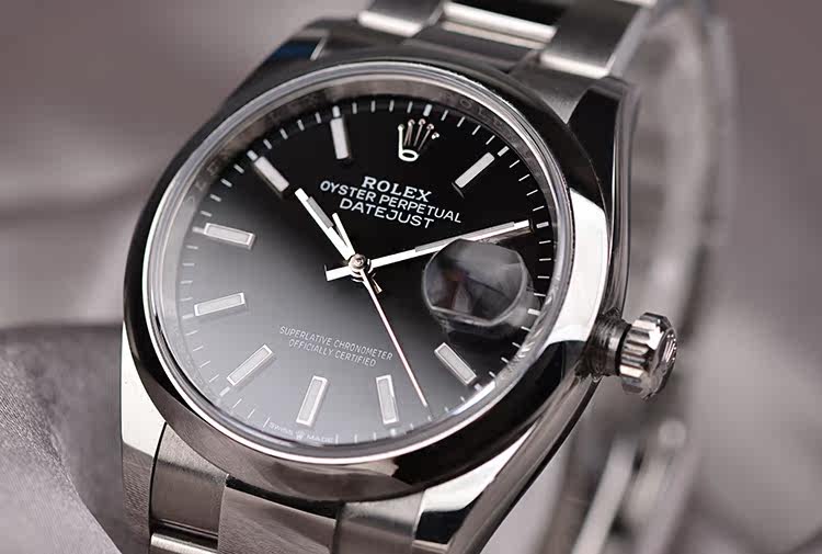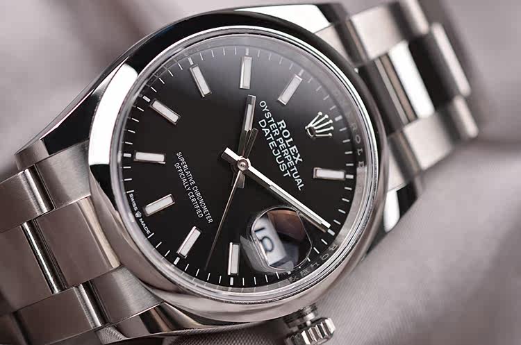 最新款日志型黑盘大三针日历36MM自动机械钢带男表