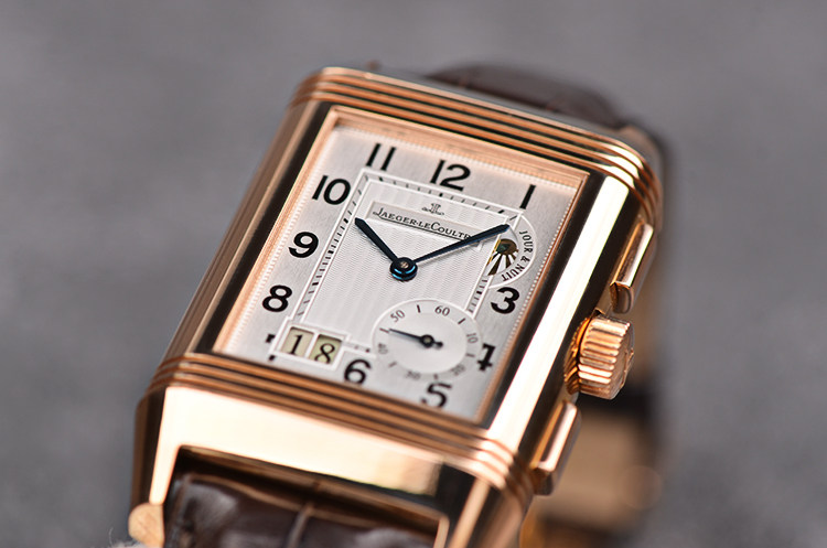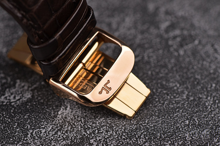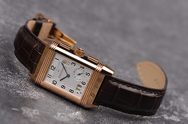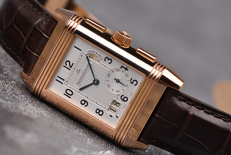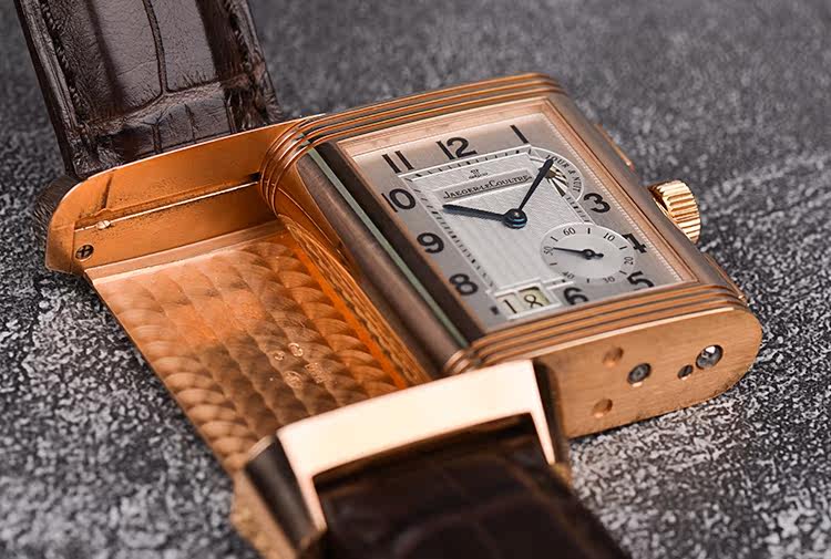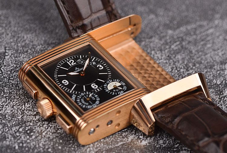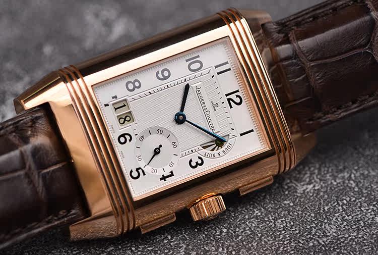 翻转系列玫瑰金双表盘两地时大日历昼夜显示手上链折叠扣男表