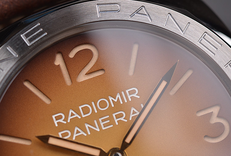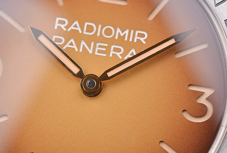 表盘:立体棕色渐变三明治表盘,玫瑰金夜光指针