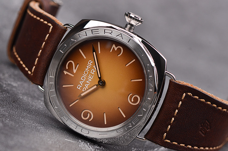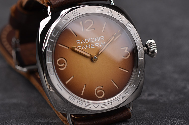 特别限量版棕色渐变三明治面3天动储47MM手上链皮带男表