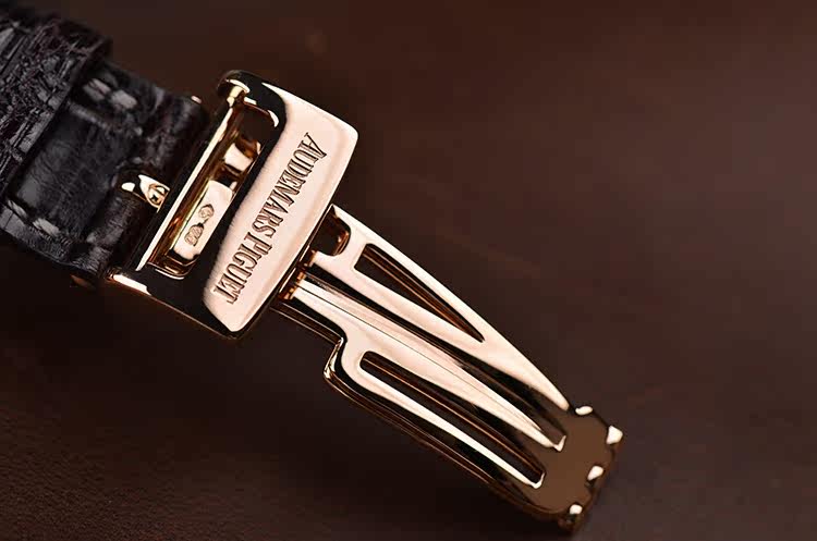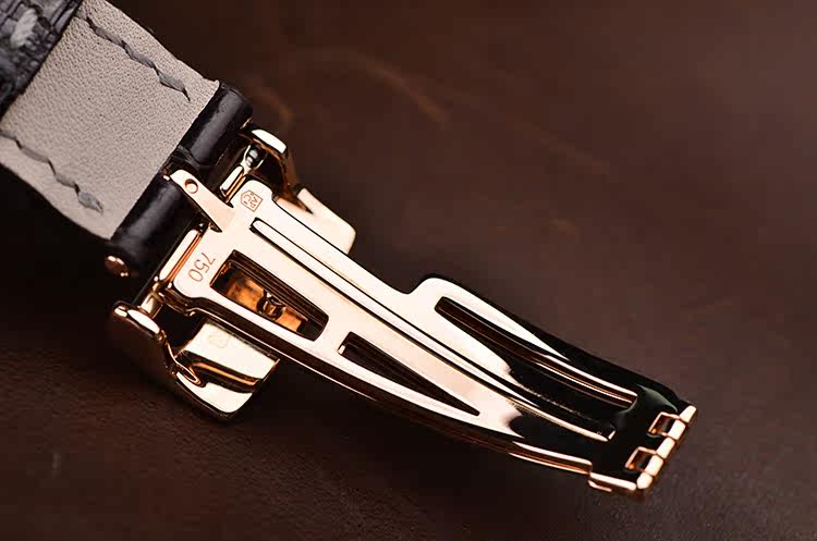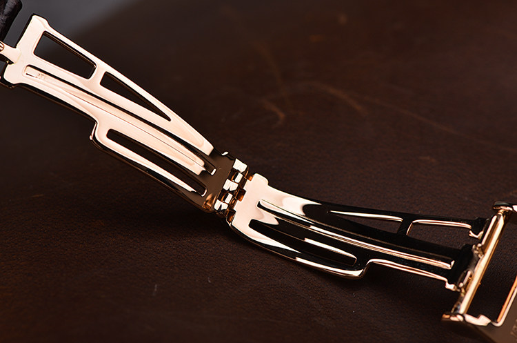 艾迪玛玫瑰金动显日历手上链折叠扣皮带腕表