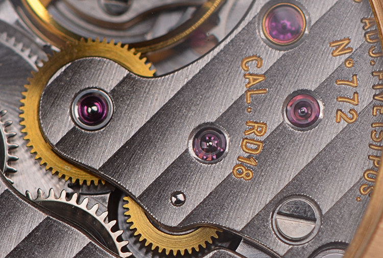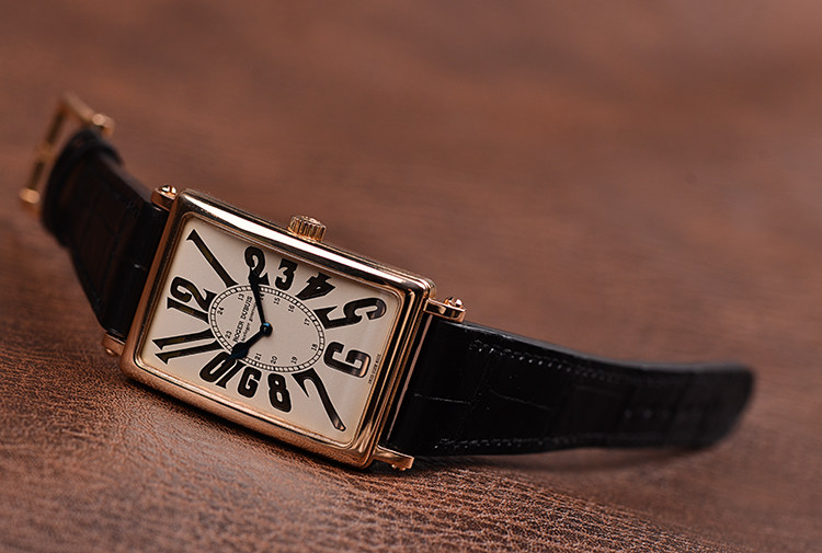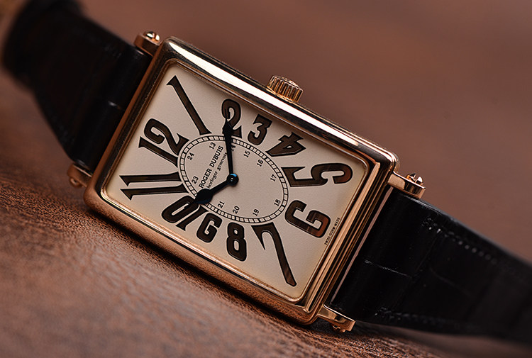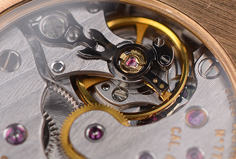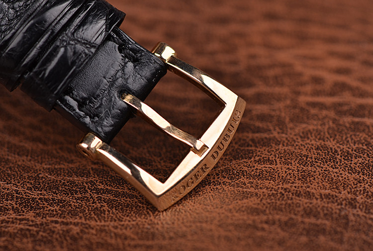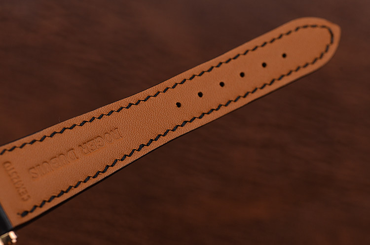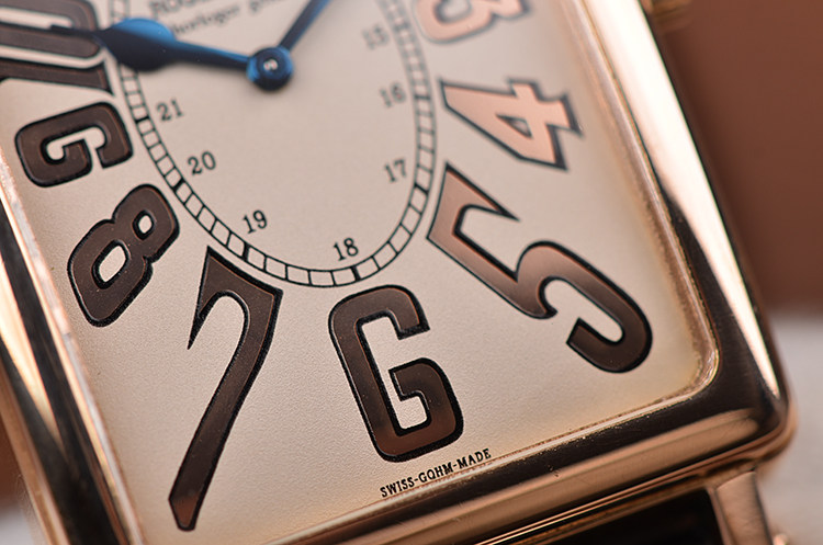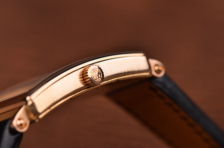 表盘:立体白色表盘,金色阿拉伯数字刻度,蓝钢桃心指针