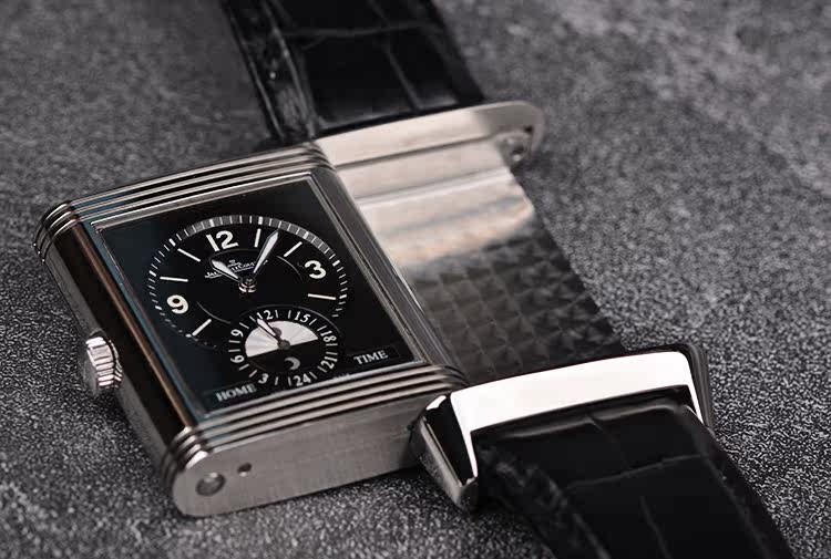 大型双面翻转系列GMT双时区日历及昼夜显示手上链皮带男表