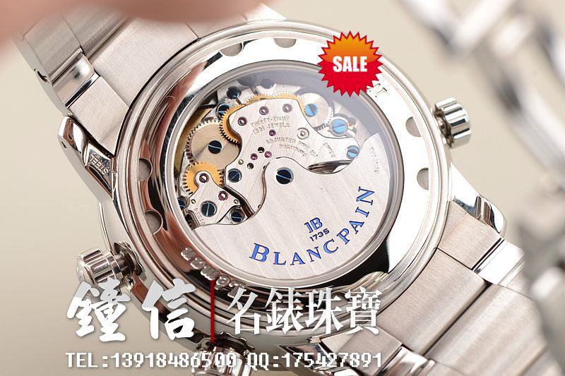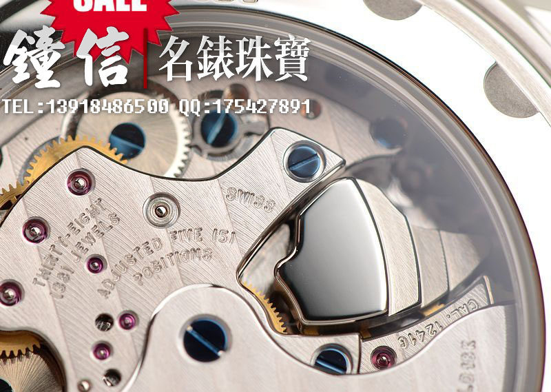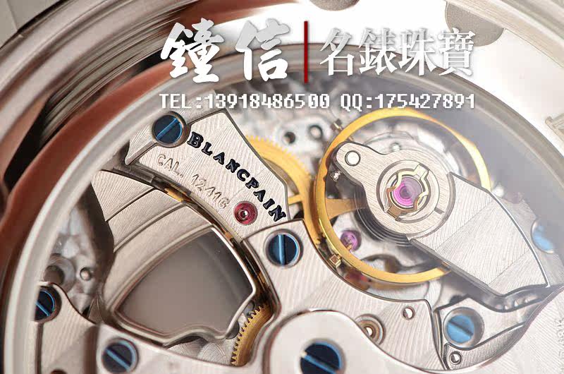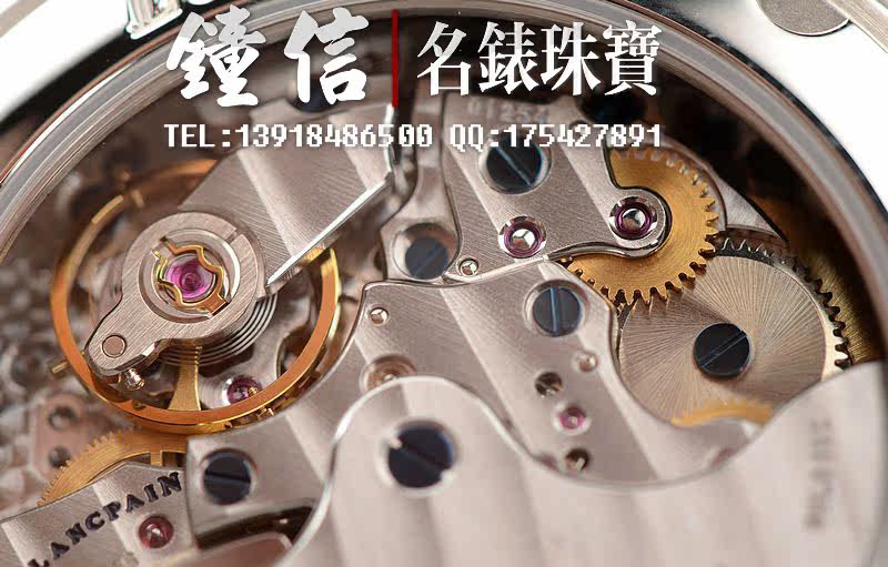宝珀自厂Caliber 1241型机芯,自动机械,高达407个零件组成,高复杂机芯,极其精致日内瓦条纹打磨,倒角抛光修饰,38钻,摆频28800,5方位校正。动力储备40小时。18K白金自动转陀。走时状态极佳。闹铃声音清脆悦耳。