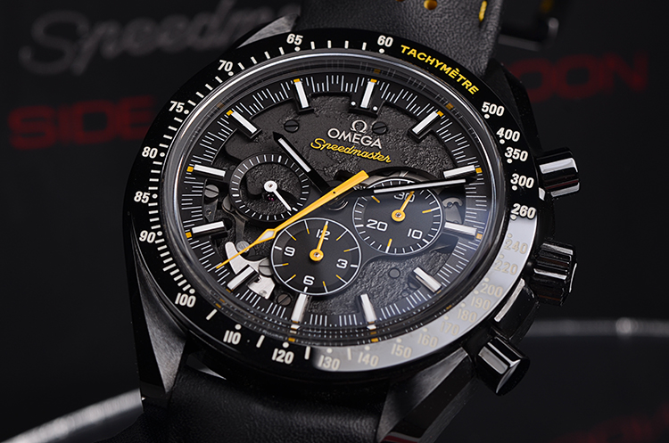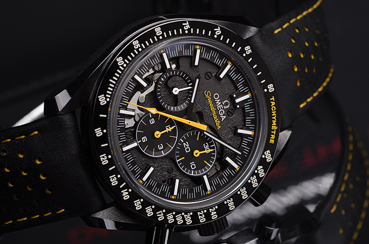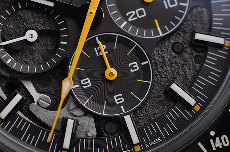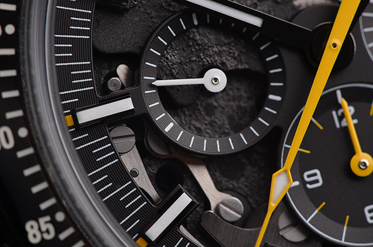 表盘:月球表面元素镂空计时表盘,夜光刻度及指针