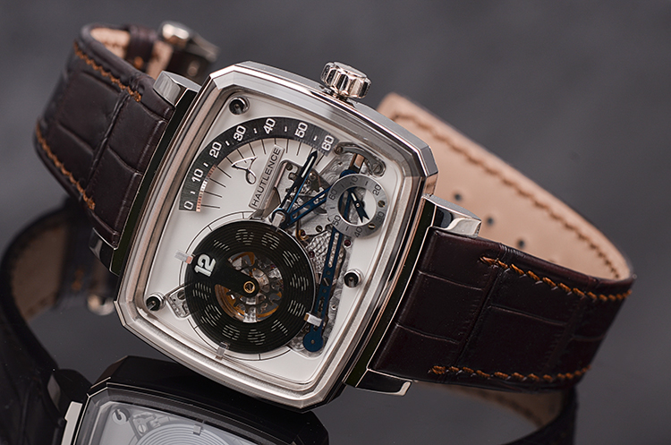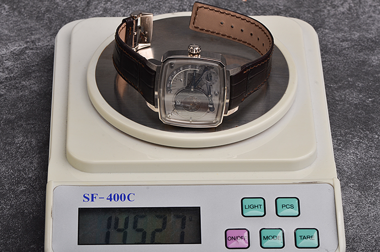 限量版白金镂空跳时43.5MM手上链皮带男表