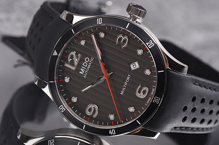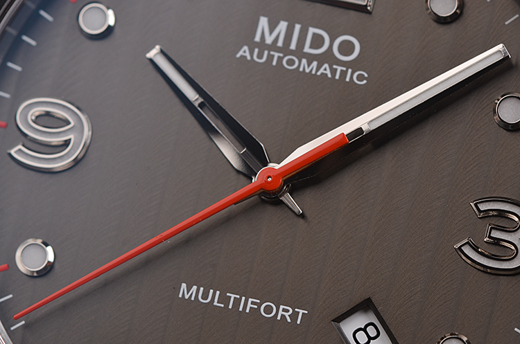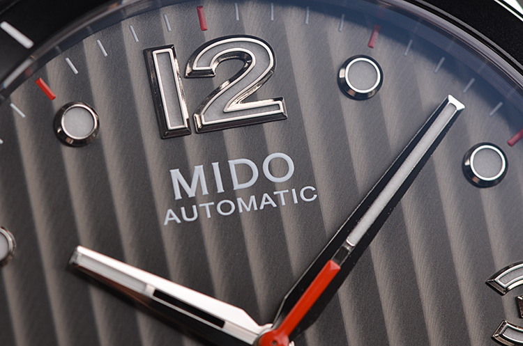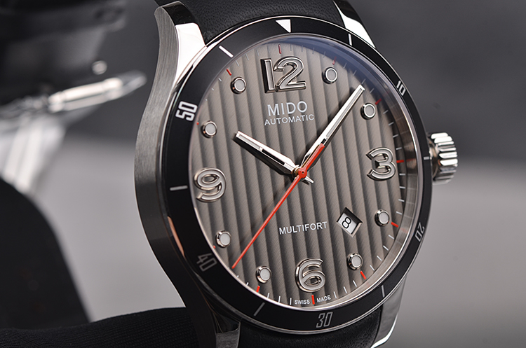 表盘:立体深灰色日内瓦纹表盘,夜光刻度及时分针,日历显示