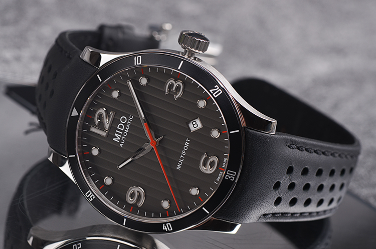 舵手系列深灰面大三针日历42MM自动机械皮带男表