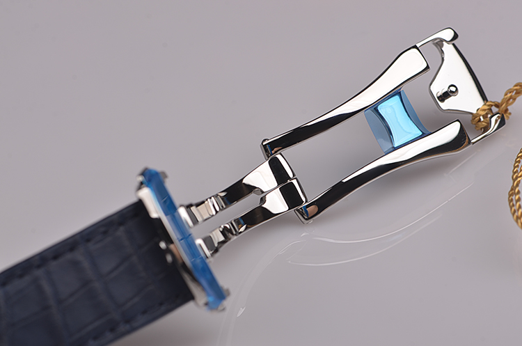蝶飞系列蓝面计时日历42MM自动机械折叠扣皮带男表