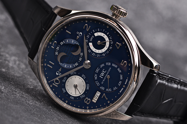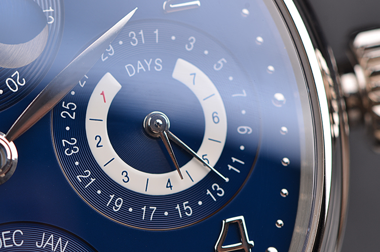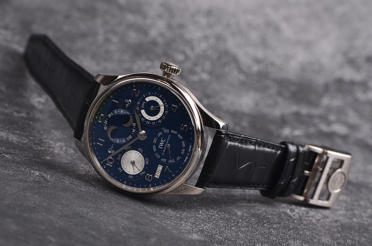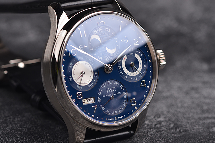 葡萄牙系列白金蓝面万年历南北月相7日链自动折叠扣皮带男表