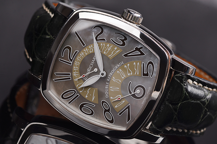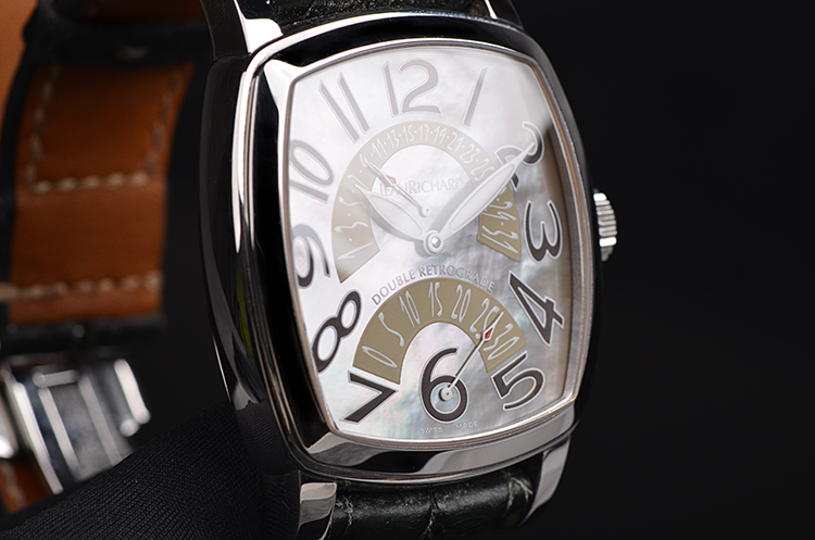 大溪地贝母面秒针日历双逆跳自动折叠扣皮带男表