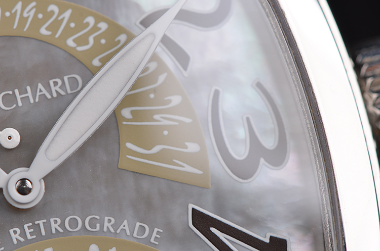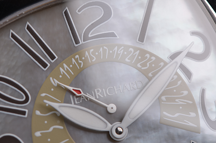 表盘:七彩大溪地珍珠贝母表盘,阿拉伯数字刻度,夜光时分针