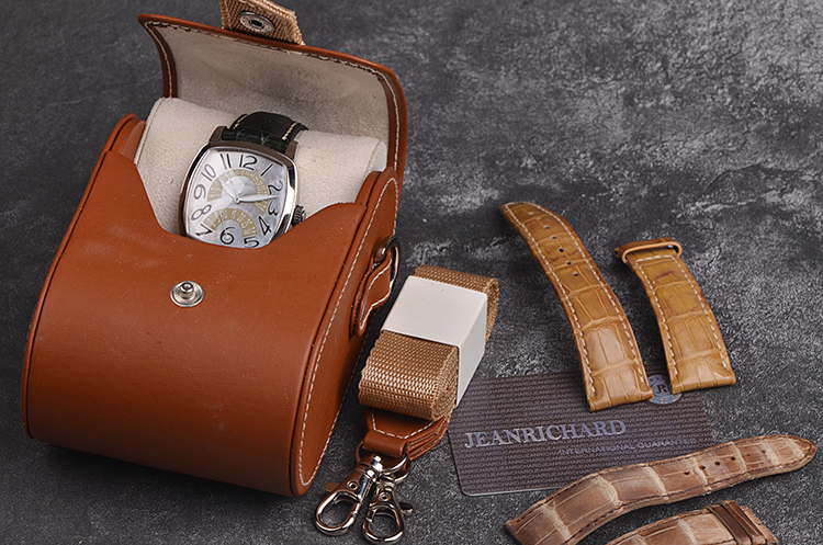 表带:后配墨绿色鳄鱼皮表带,另有一条卡其色原厂鳄鱼皮表带,一条黄棕色后配鳄鱼皮表带,共计3条表带