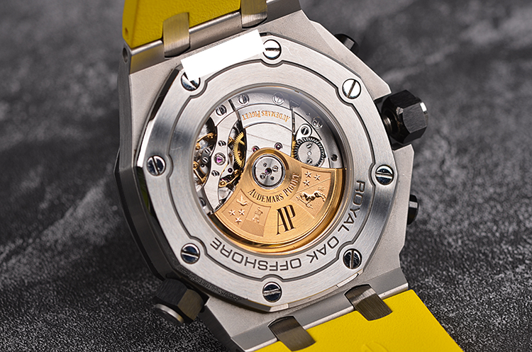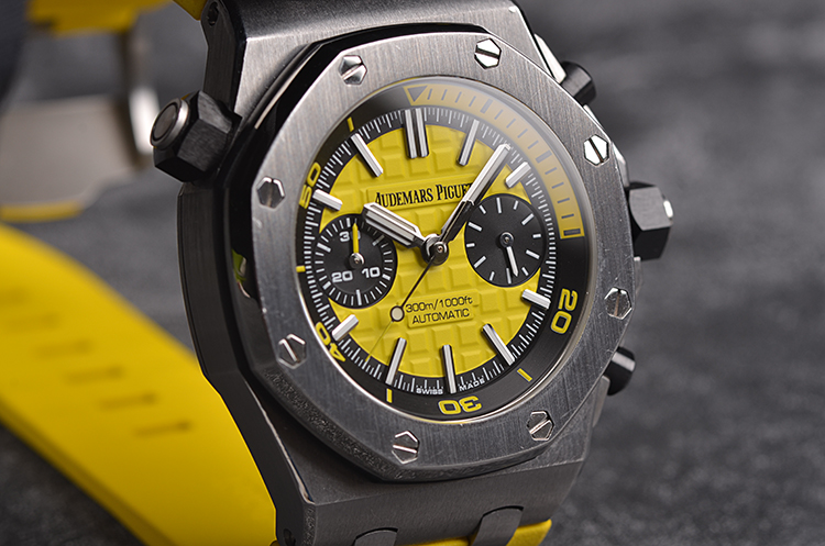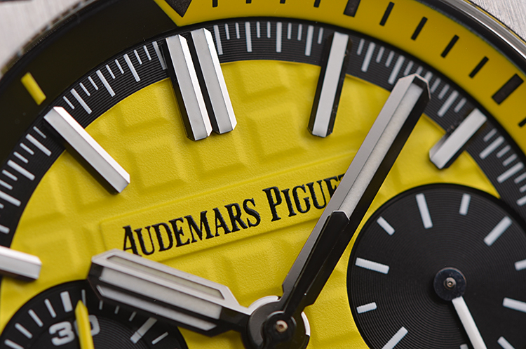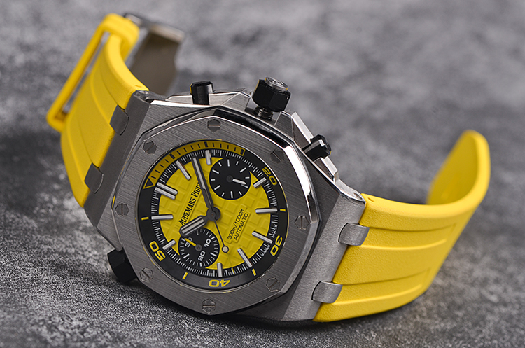 皇家橡树离岸型四分之一黄42MM计时自动机械胶带男表