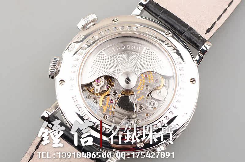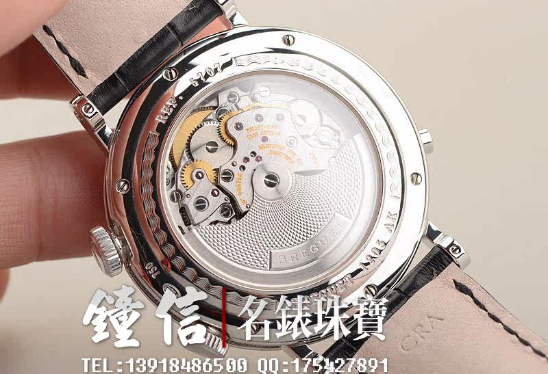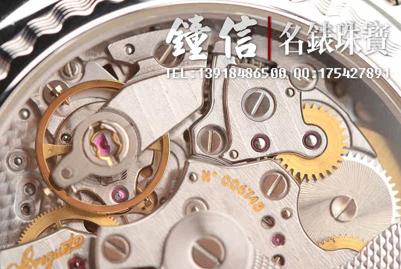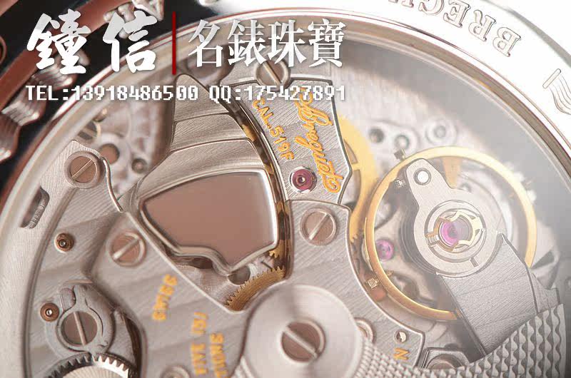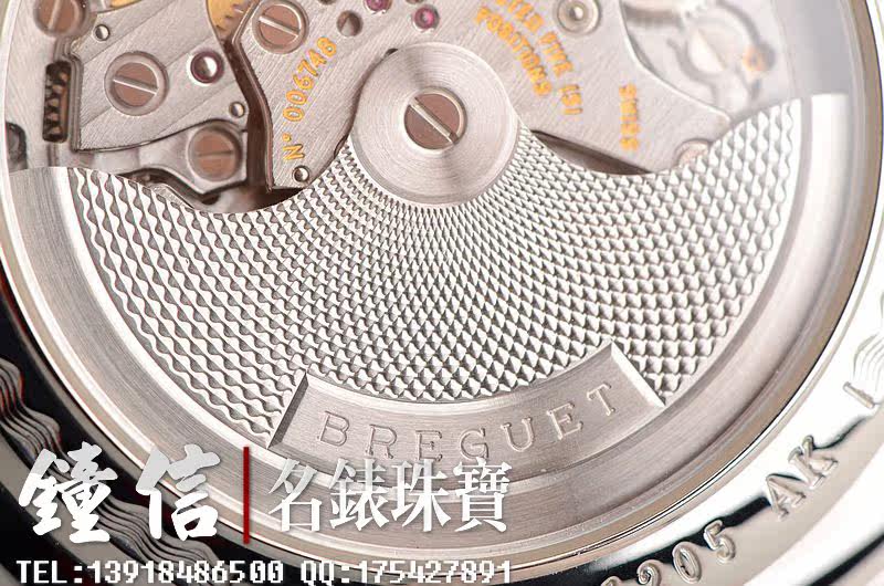 宝玑自产的CAL.519F型机芯,自动机械,极其精致日内瓦条纹打磨,倒角抛光修饰,38钻,5方位校正,摆频28800,动力储存约45小时。18K白金镌刻自动转陀,机芯独立签署,走时状态极佳。闹铃声音清脆悦耳。