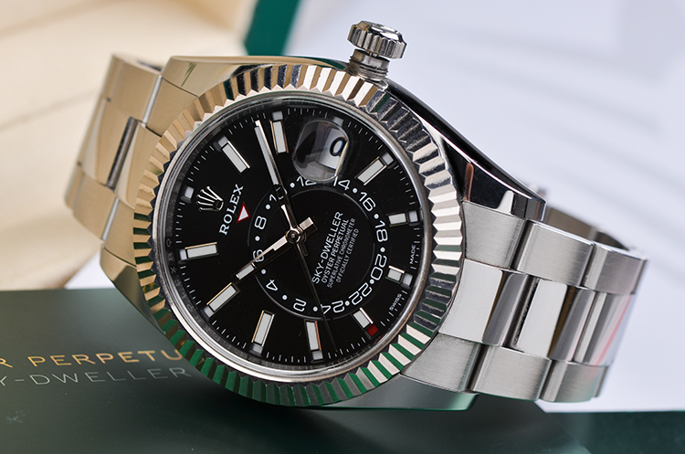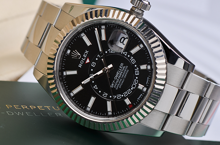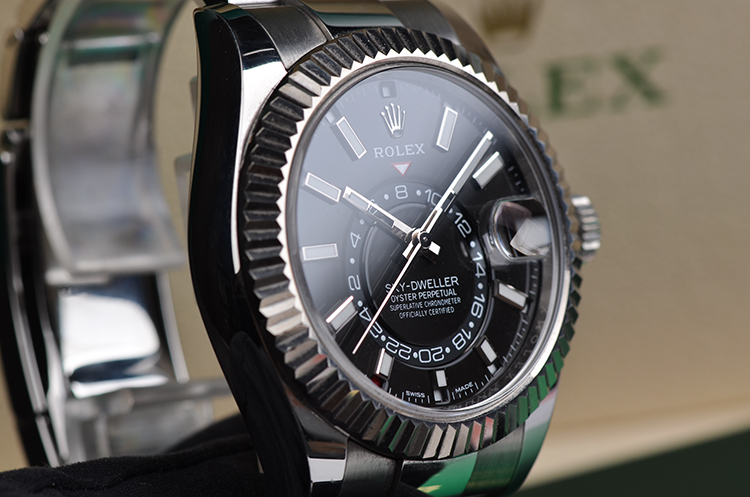 表壳:904L精钢表壳,18K白金可旋转三角坑纹表圈
