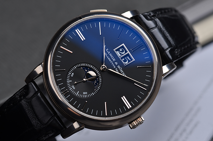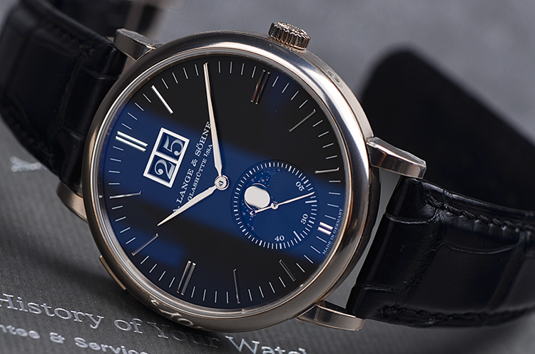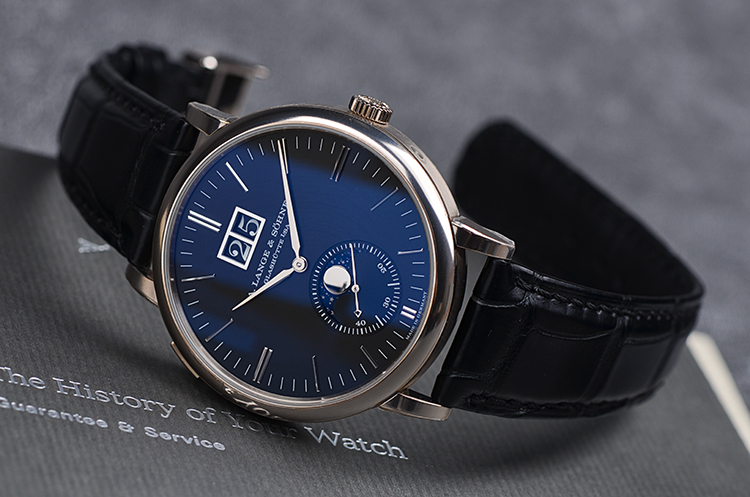萨克森白金大日历月相3天动储40MM自动机械皮带男表