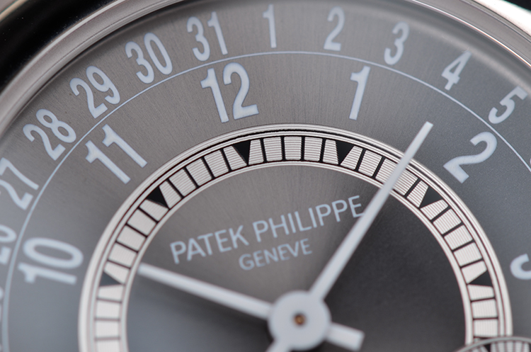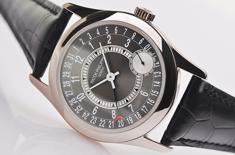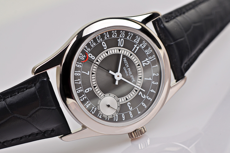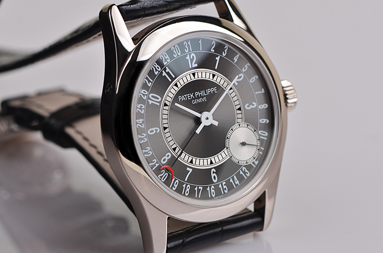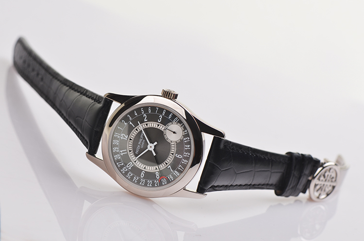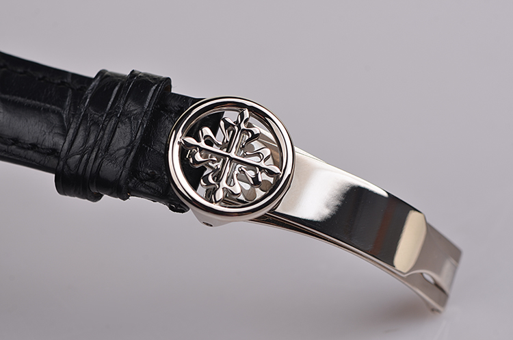 卡拉卓华系列白金深灰面指针日历自动机械折叠扣男表
