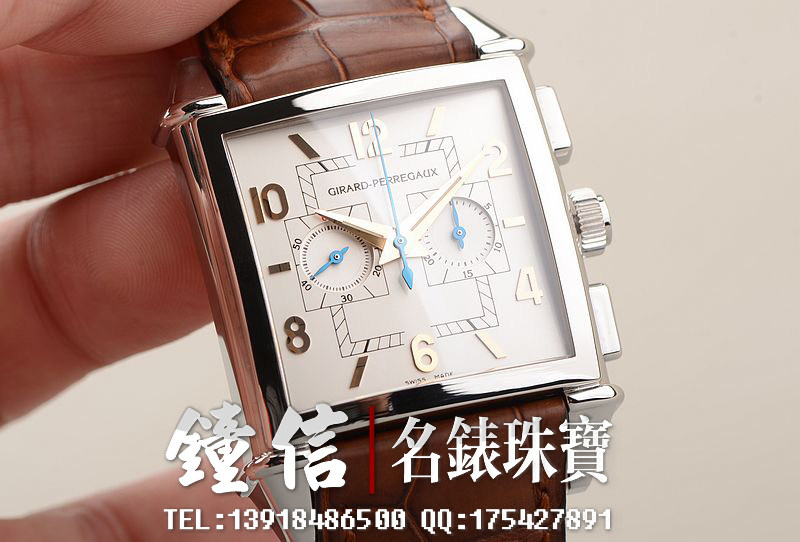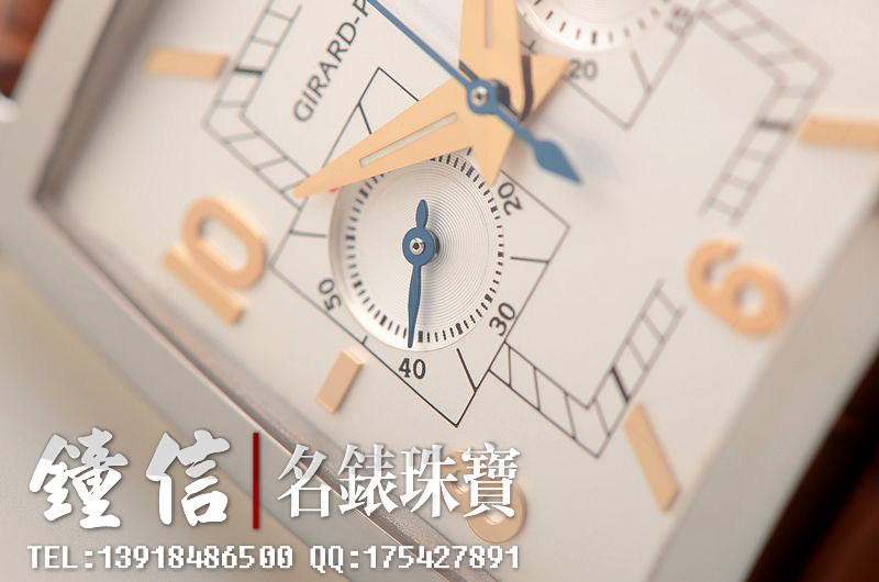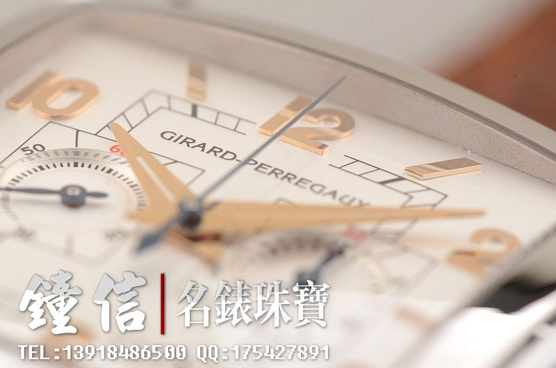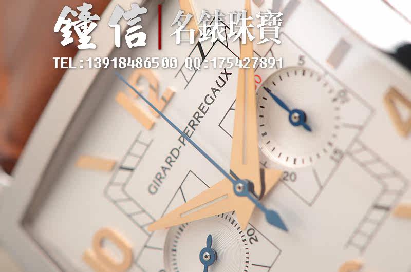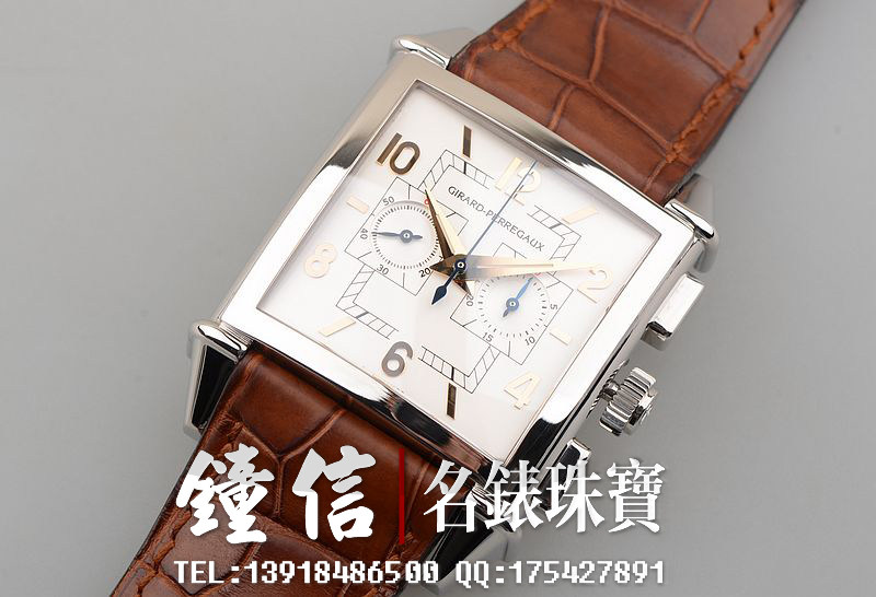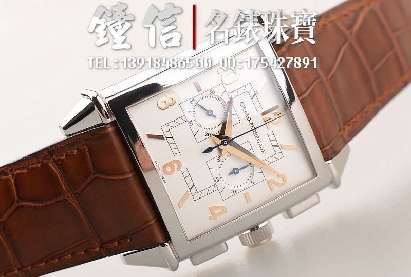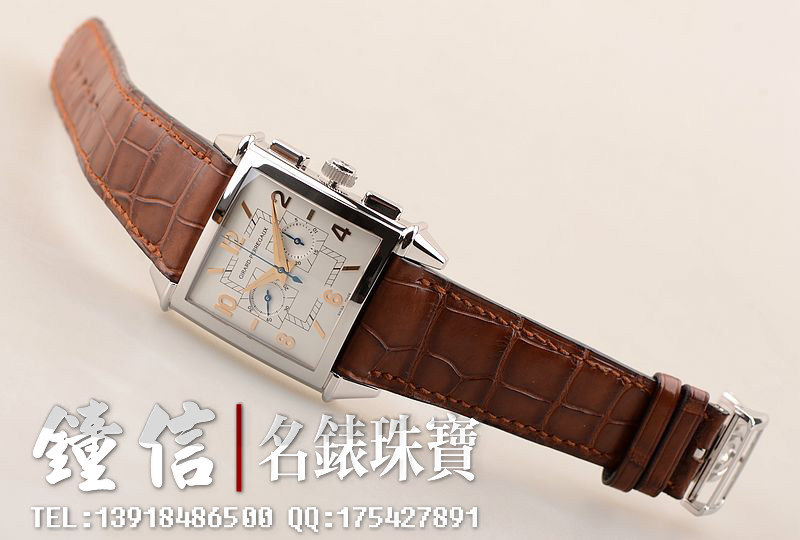 18K白金表壳及折叠式表扣,圣伯纳狗头印记。原厂棕色鳄鱼皮表带成色近全新。蓝宝石水晶镜面及底盖,立体白色计时表盘,玫瑰金指针及刻度,蓝钢计时指针,9点位独立小秒针,3点位30分钟计时。口径47.7MM*34.2MM*13.5MM,相当于圆表42MM左右大小。防水30M。