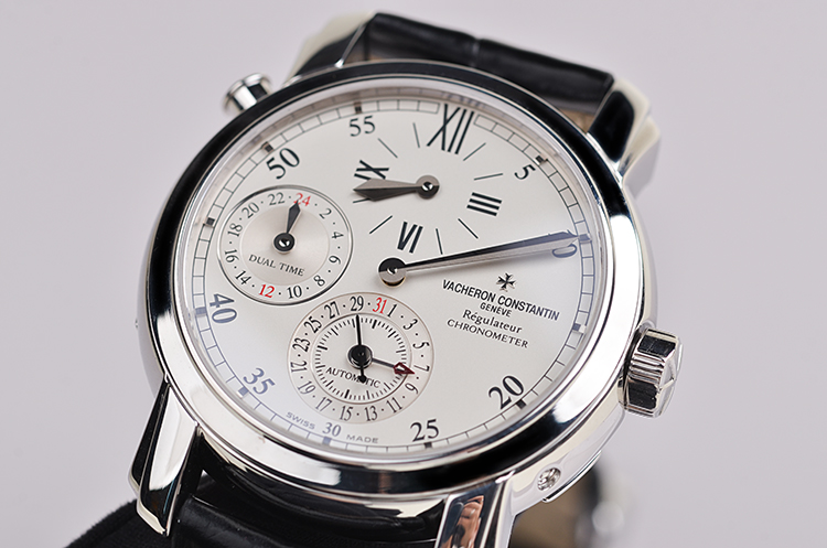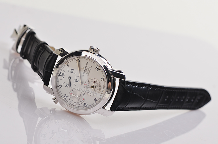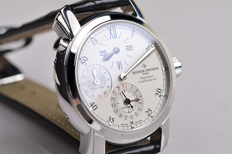 表盘:立体银白色规范针表盘,GMT两地时,指针日历