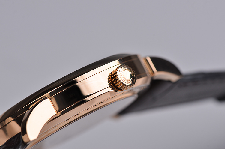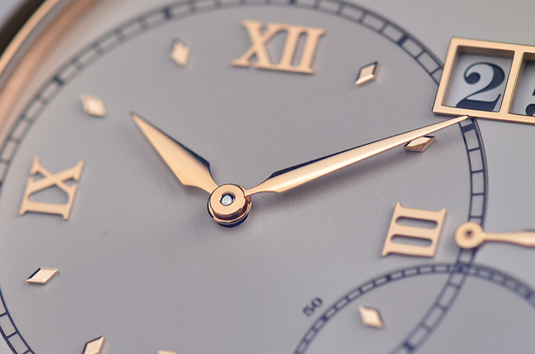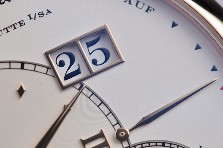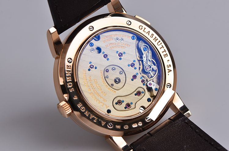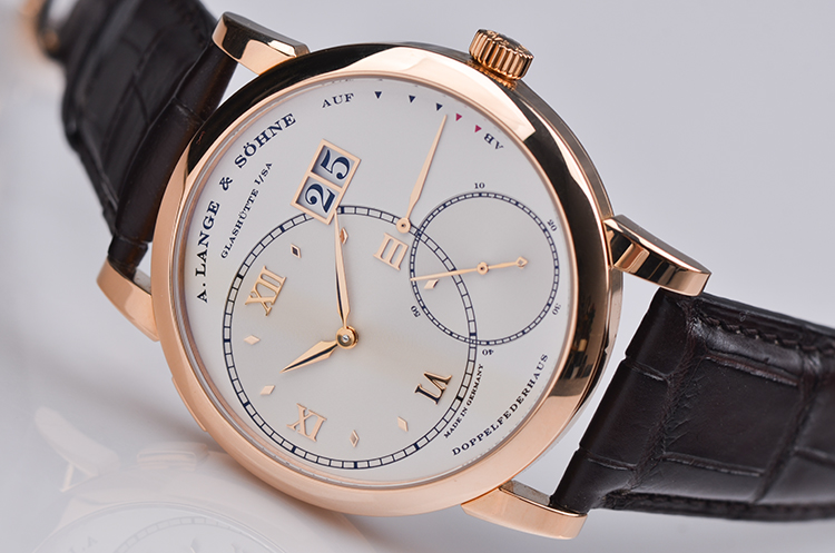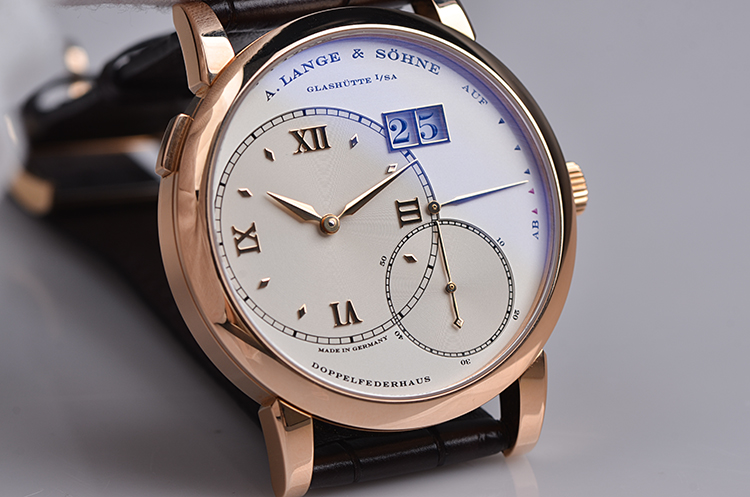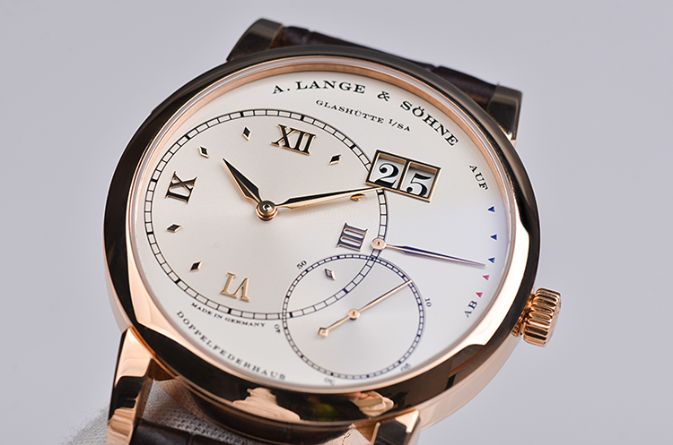 大号朗格1号玫瑰金偏心大日历手上链皮带男表
