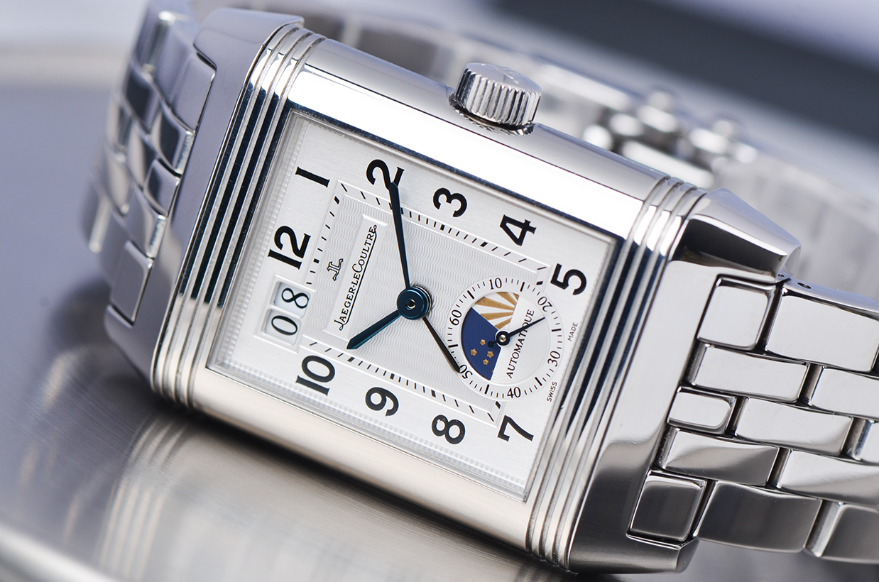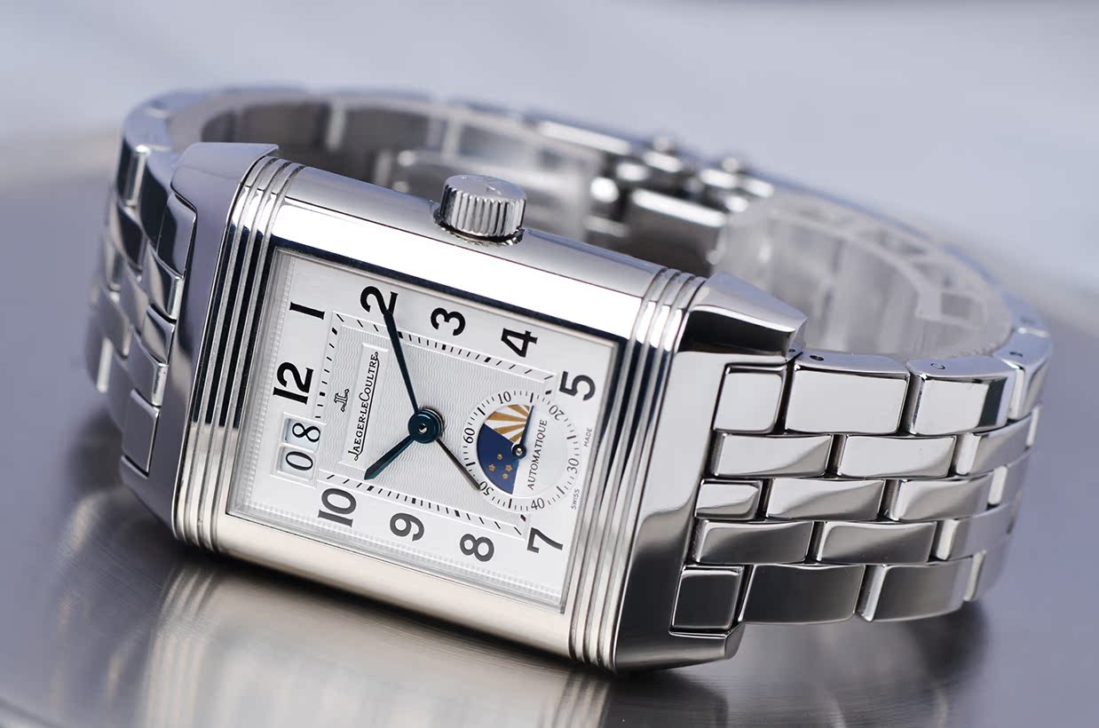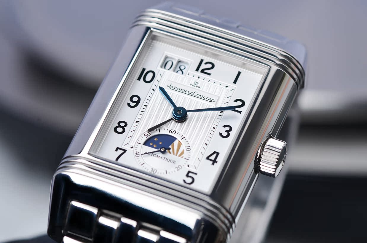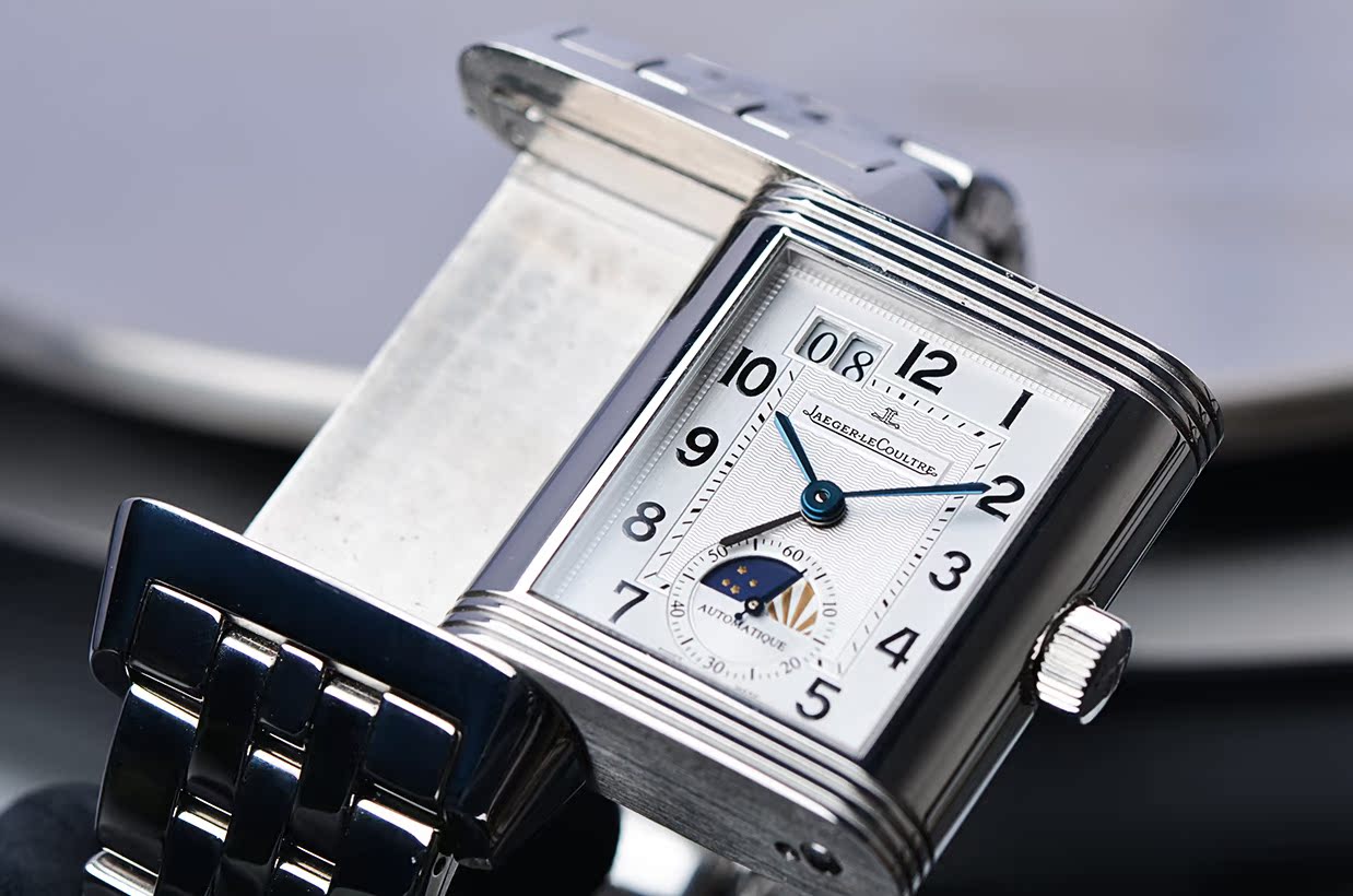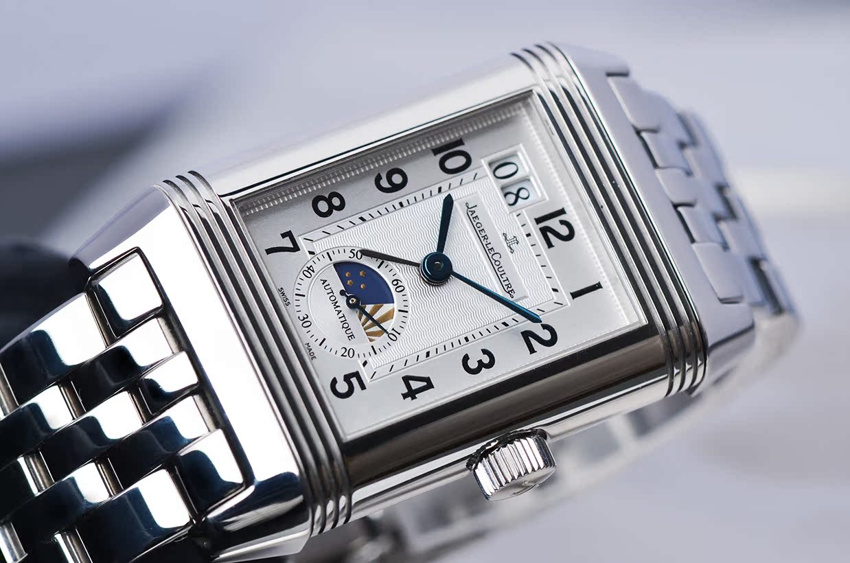 大型翻转系列大日历两地时昼夜显示自动钢带男表