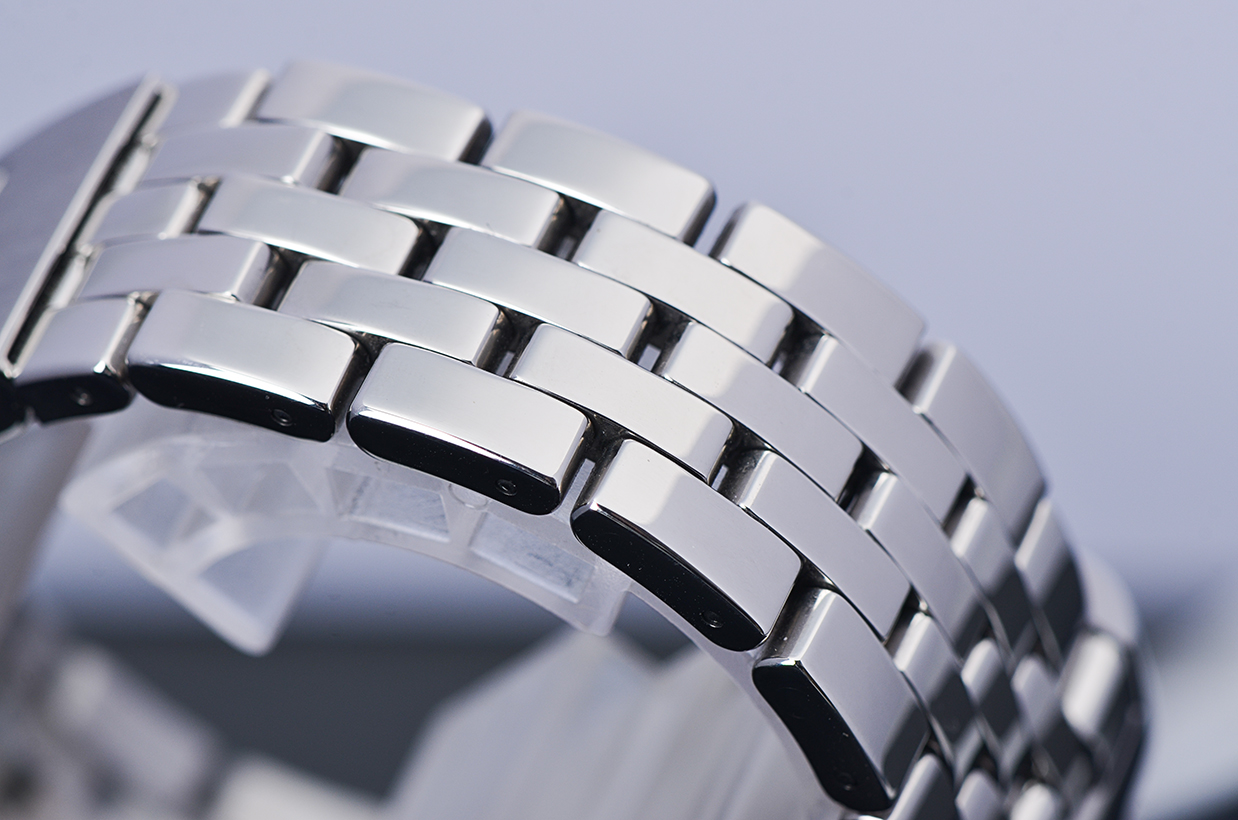 表盘:立体银白色表盘,蓝钢指针,阿拉伯数字刻度,大日历视窗,GMT第二时区指针,昼夜显示