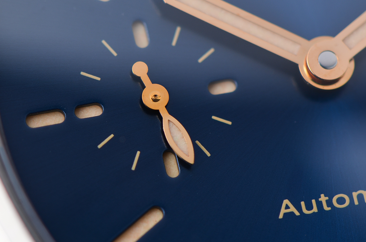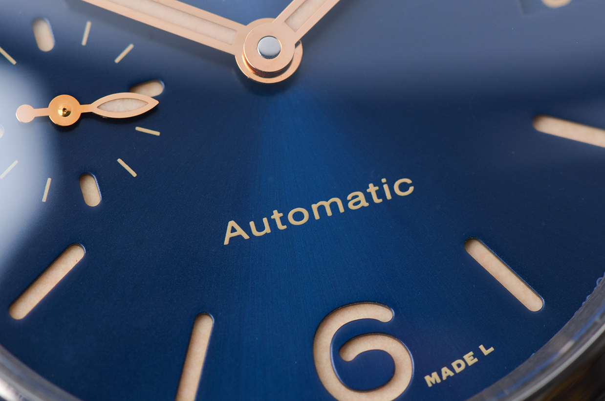 表盘:立体蓝色三明治表盘,夜光刻度及指针,日历显示