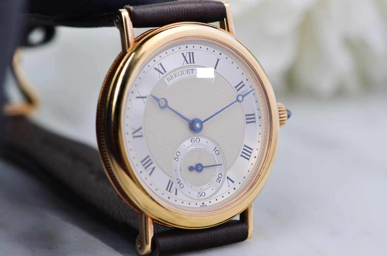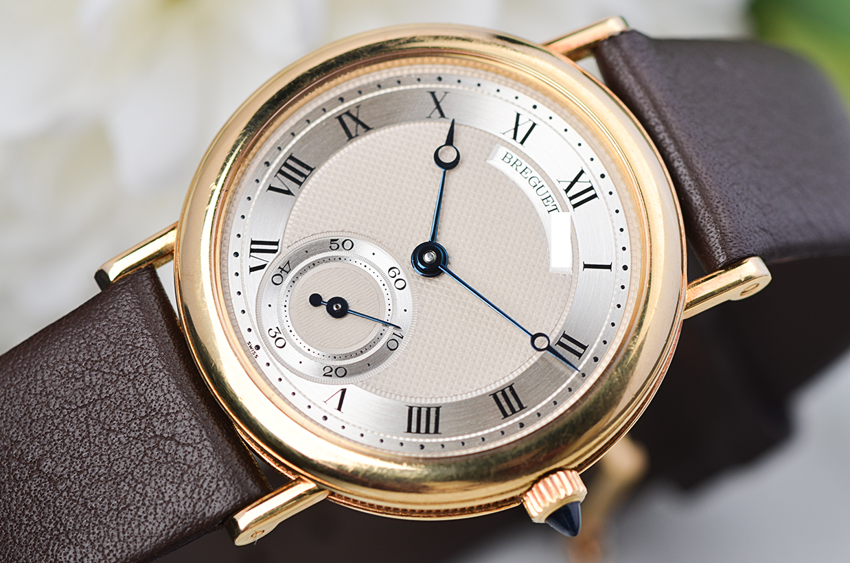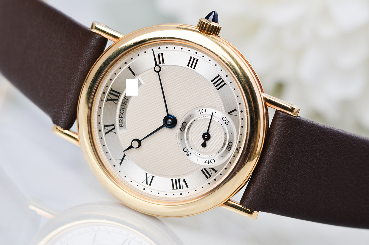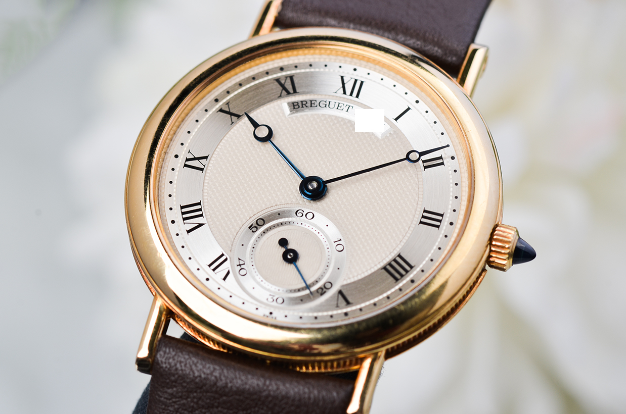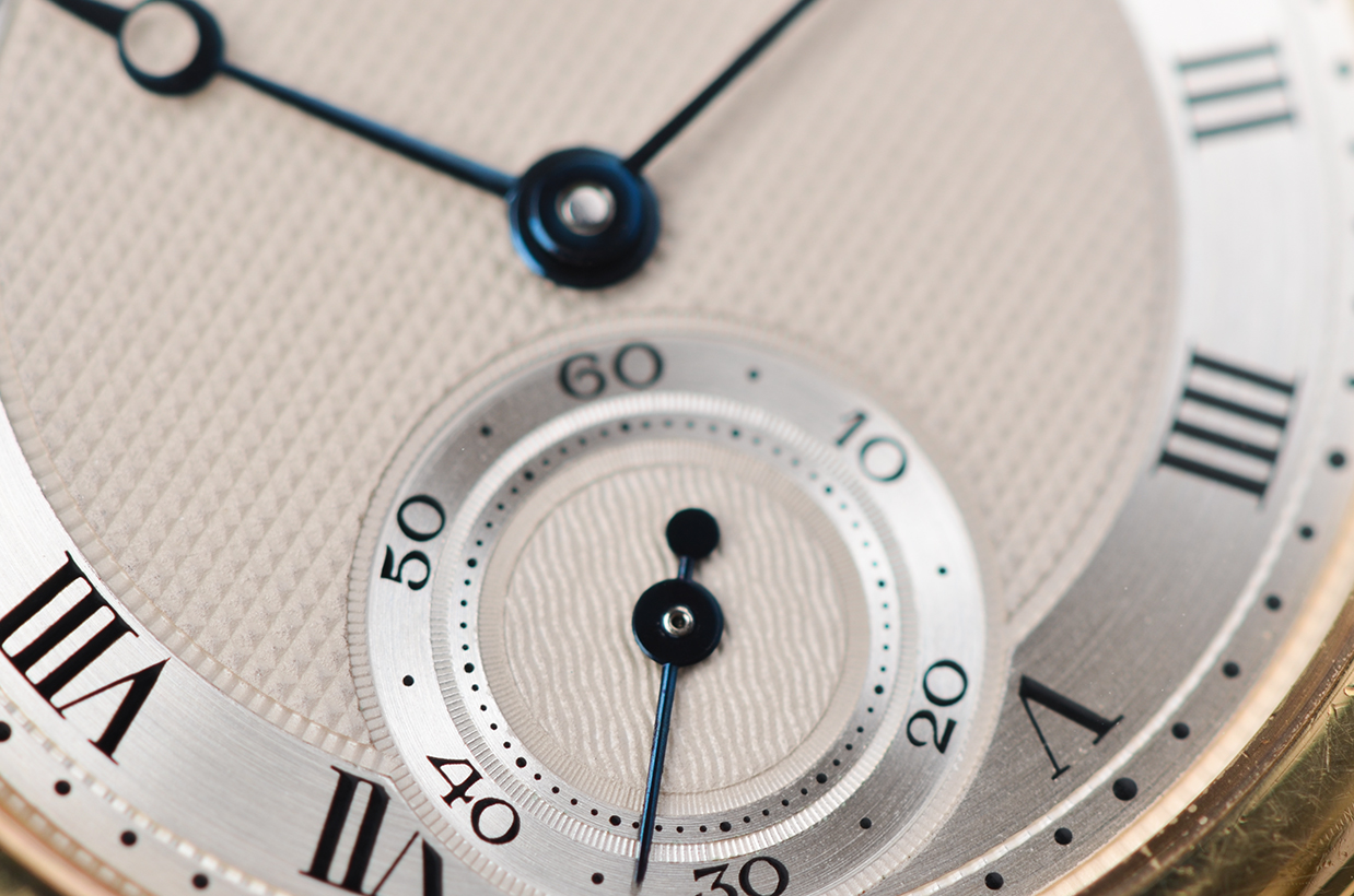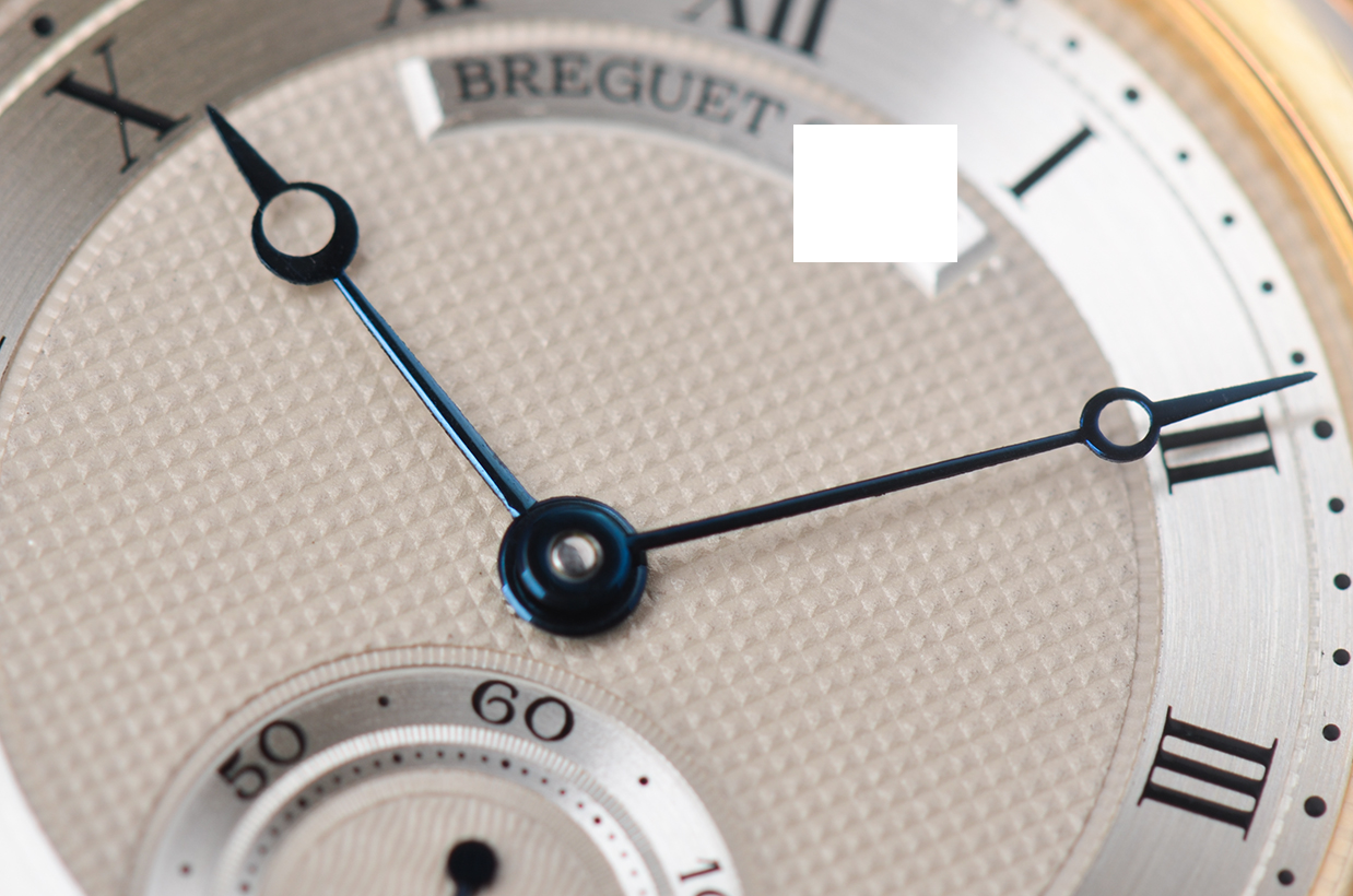 表盘:白金镀银镌刻表盘,蓝钢鱼眼指针,罗马数字刻度