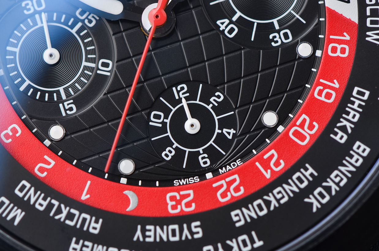 表盘:立体黑色表盘,世界时间,计时,日历显示