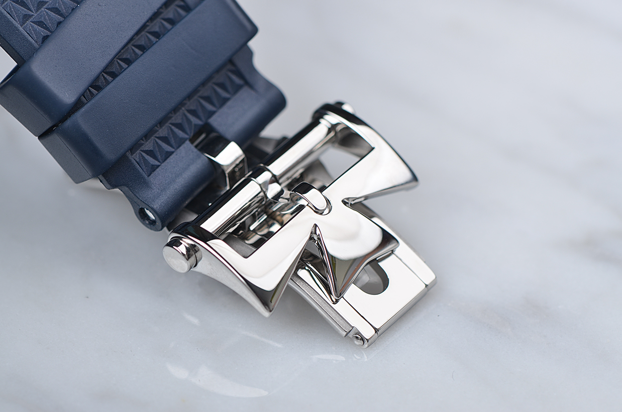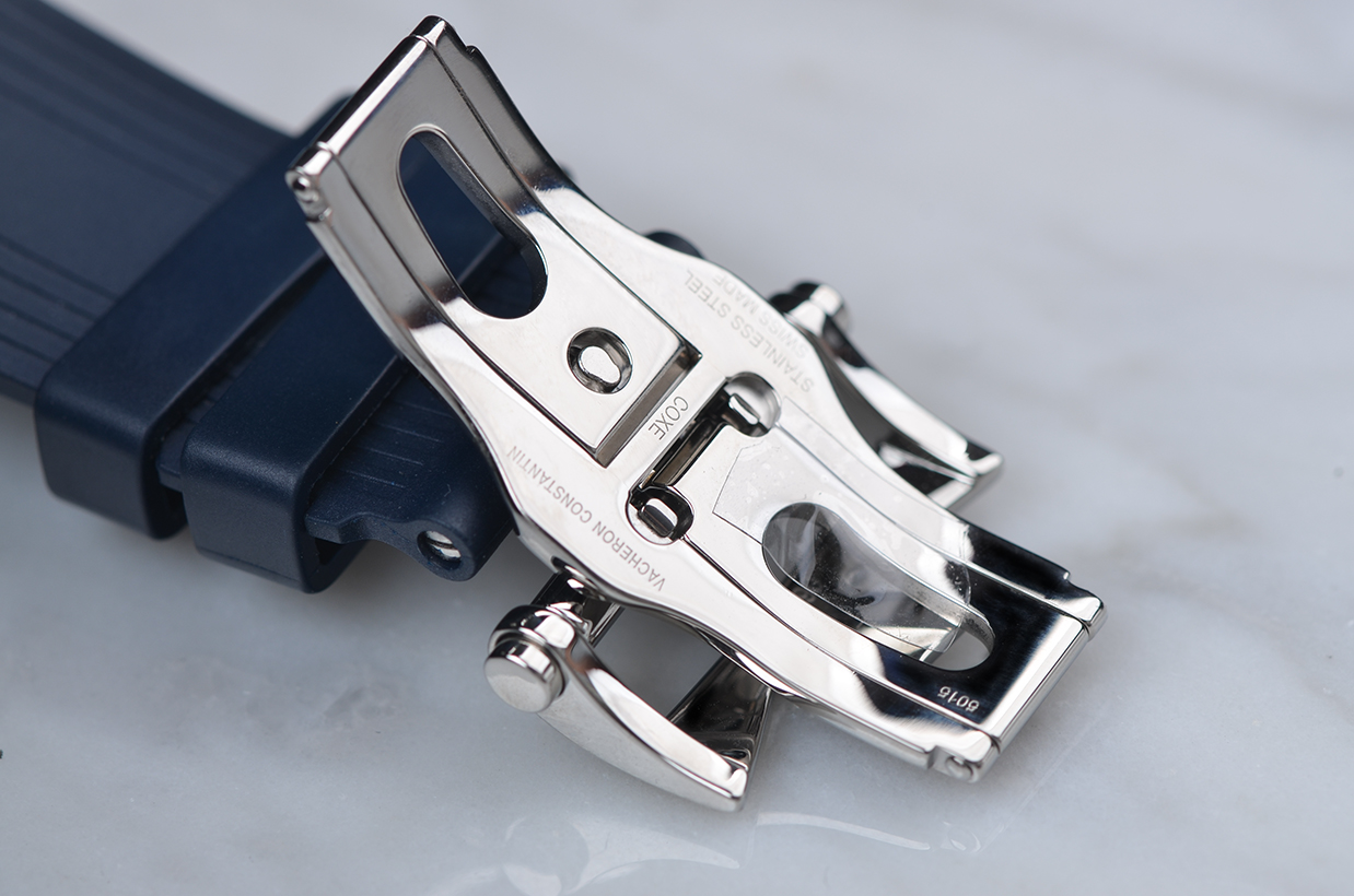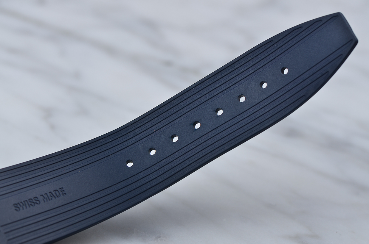 表带:原厂深蓝色橡胶表带成色极新,另有一条原厂精钢表链,一条深蓝色鳄鱼皮表带成色极新,共计3条原厂表带