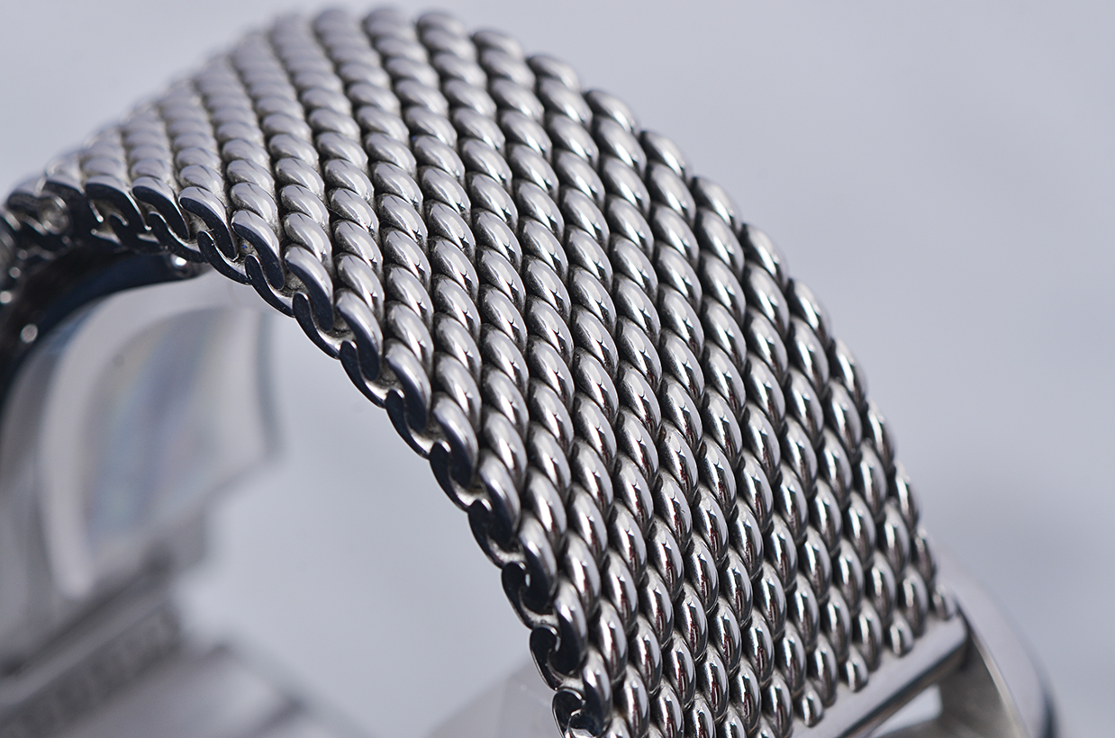 表盘:立体黑色表盘,夜光圆点刻度及时分针,日历显示