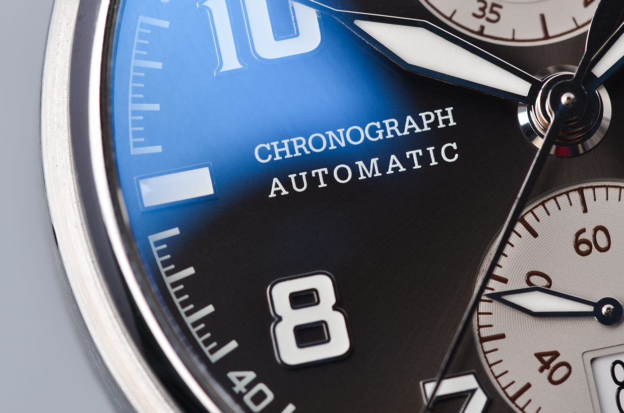 表盘:立体棕色计时表盘,夜光阿拉伯数字刻度及指针,日历显示