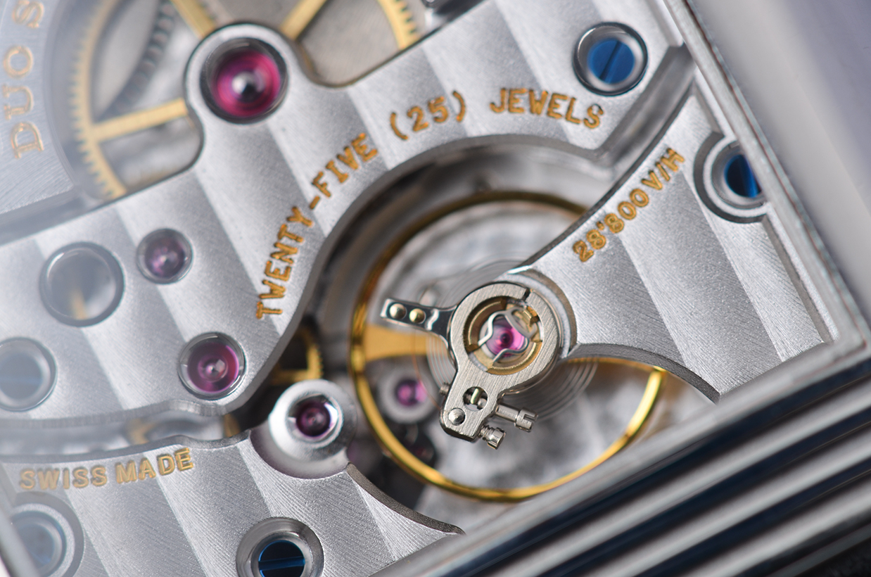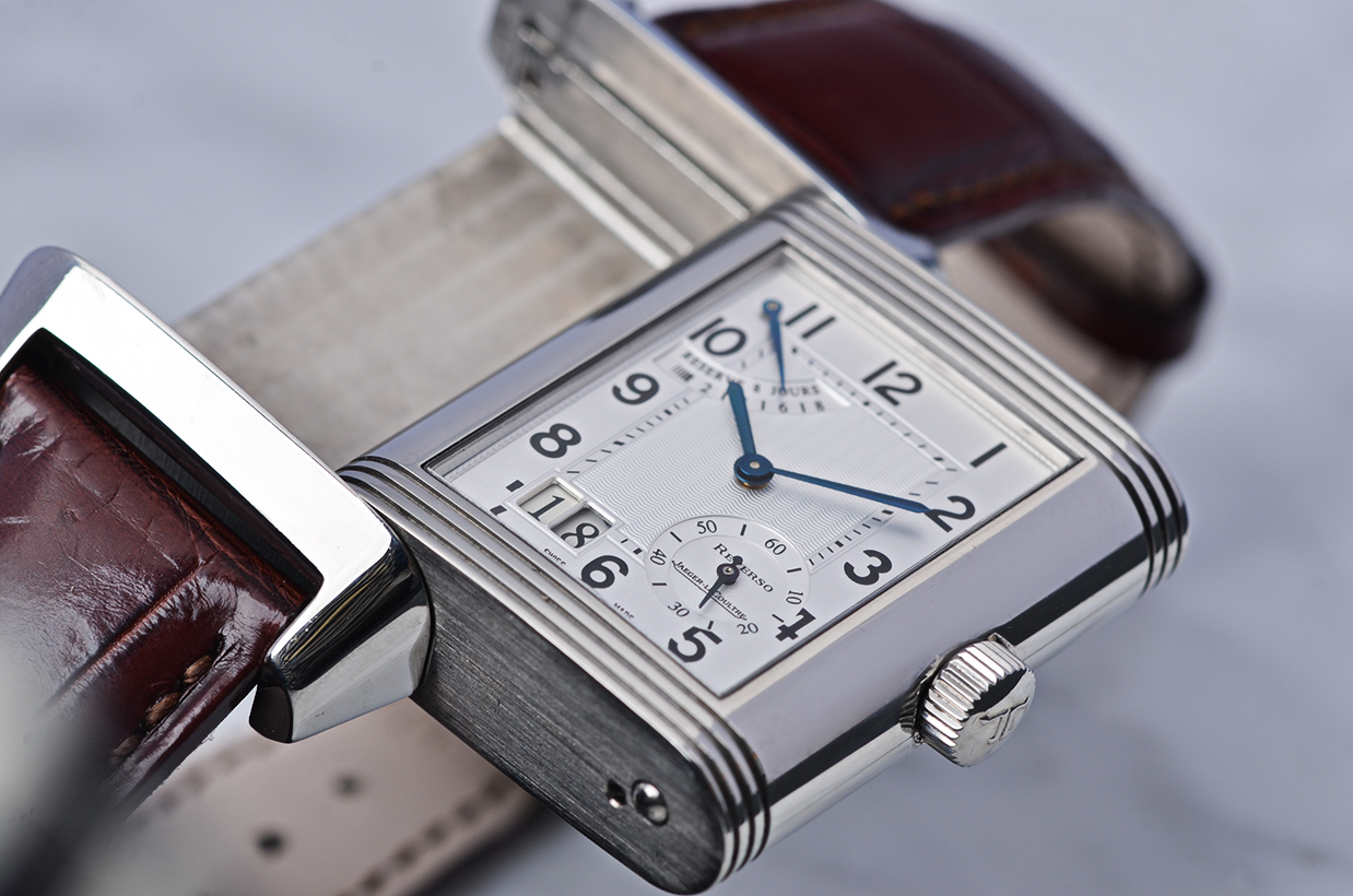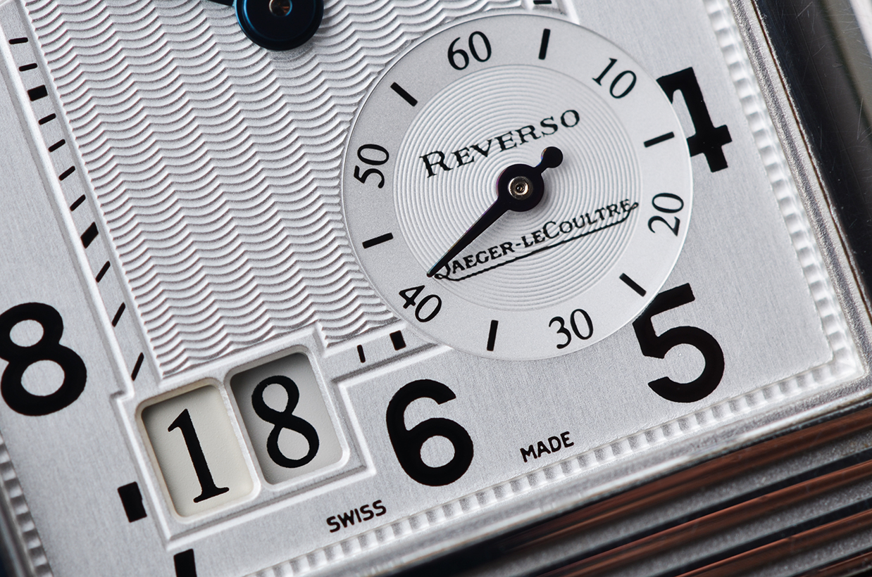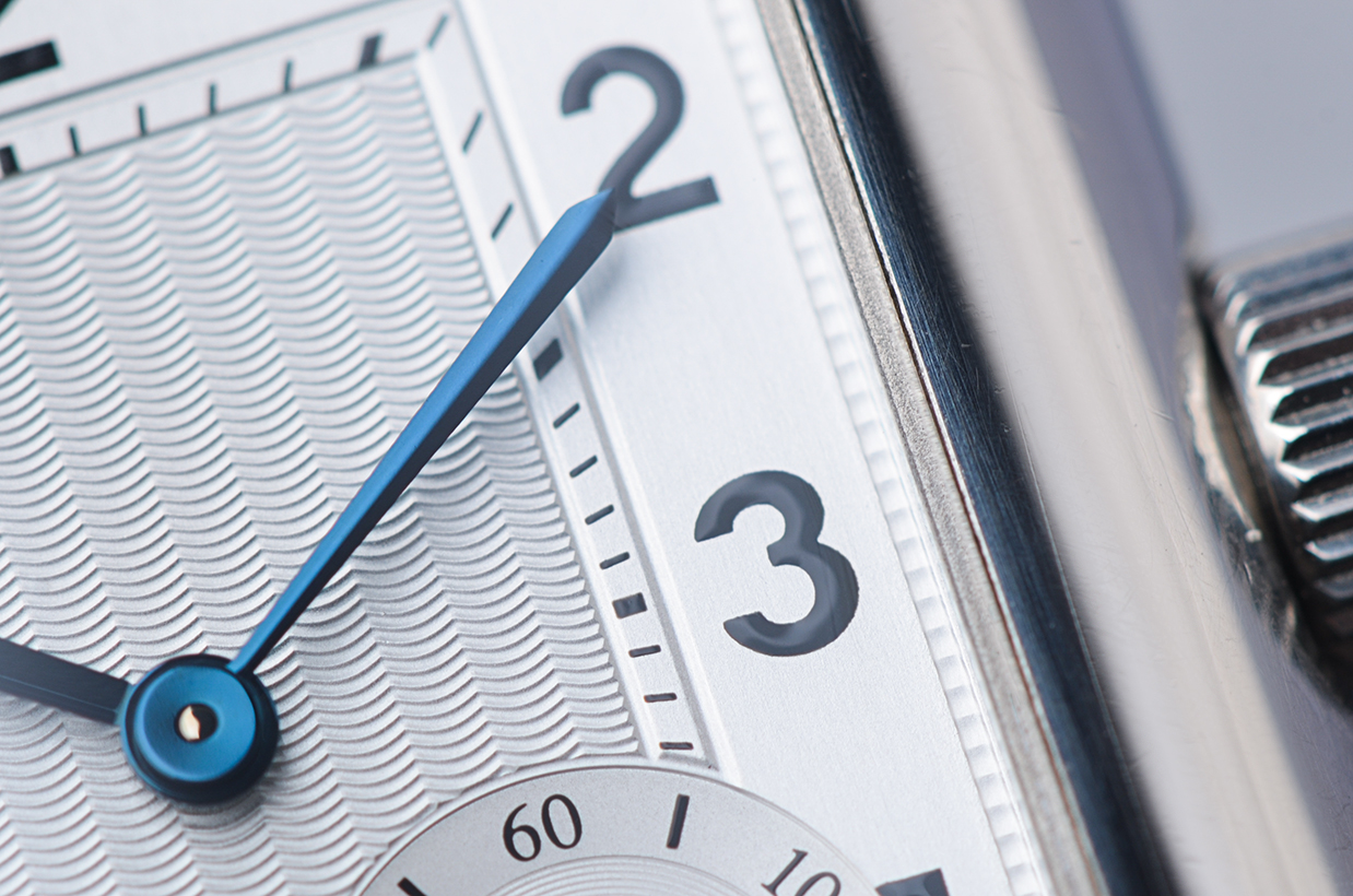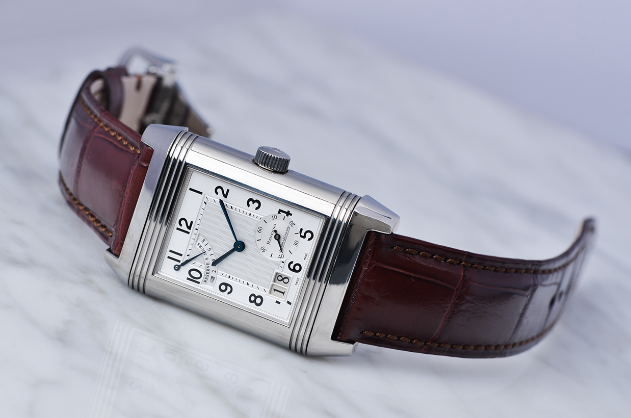 表盘:立体银白色表盘,蓝钢指针,阿拉伯数字刻度,大日历视窗,动力储备显示