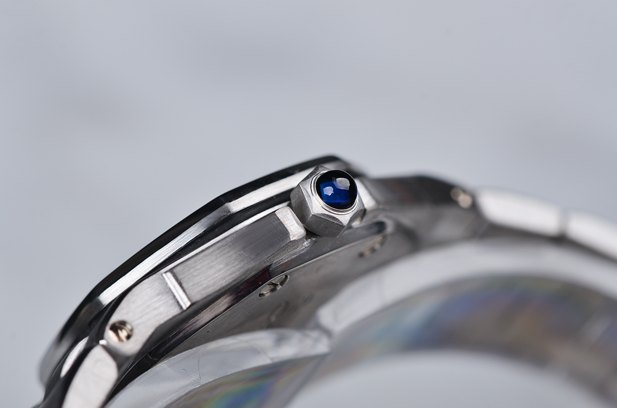 表壳:18K白金八角形表壳,表框原厂镶嵌hao华天然美钻,蓝宝石表冠