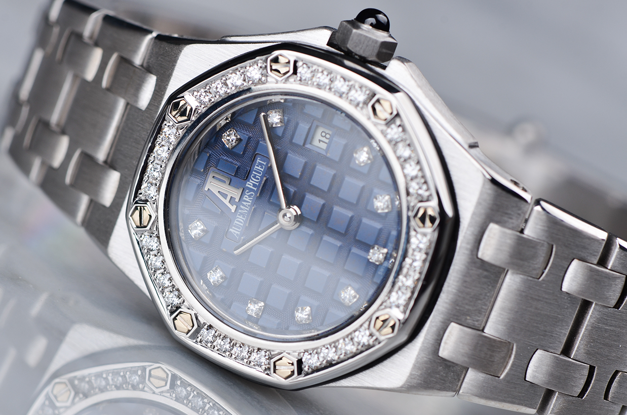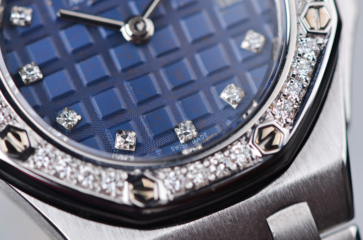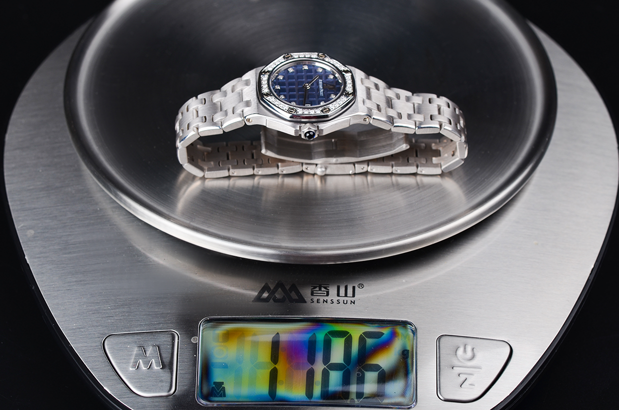皇家橡树全白金镶钻蓝盘刻度钻29MM石英女表