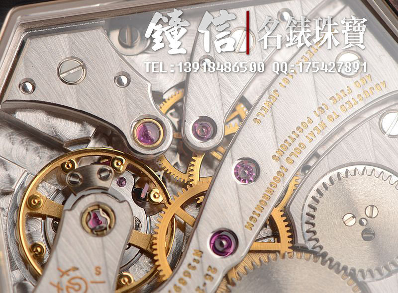 PP自产的CAL.25-21/173型机芯,手上链,由142个零件组成,7块夹板,日内瓦印记。极其精致人手条纹打磨,倒角抛光修饰。18钻,5方位校正,摆频28800,动力储备约44小时。走时状态极佳。机芯有独立签署。