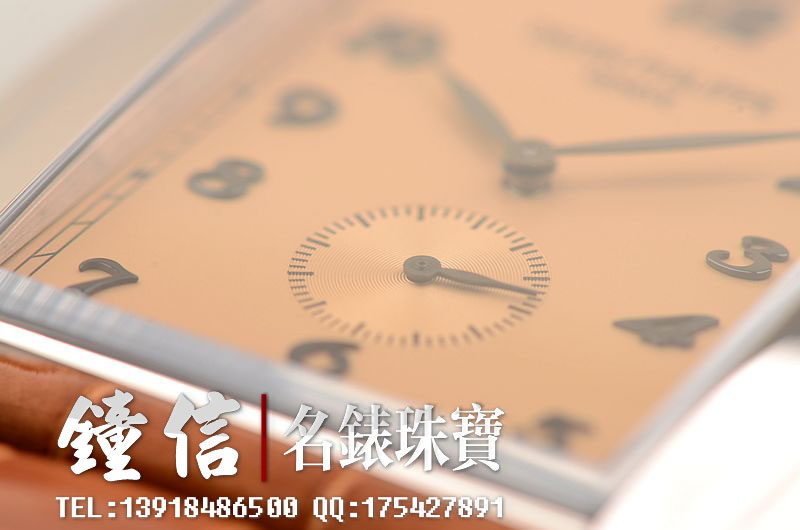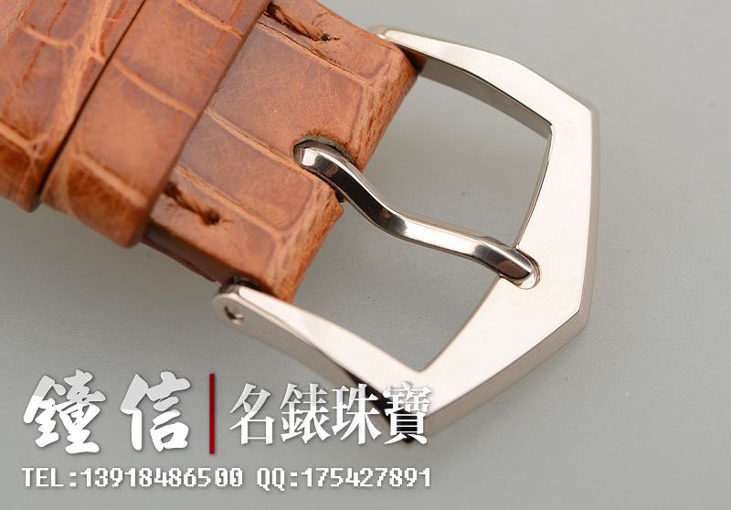 18K白金表壳及表扣,圣伯纳狗头印记。原厂咖啡色鳄鱼皮表带成色极新,基本未使用状态。蓝宝石水晶镜面及底盖,立体肉色表盘,黑色阿拉伯数字刻度,镀铑指针。口径43MM*33.4MM*7.6MM。相当于圆表40MM左右大小。防水30M。