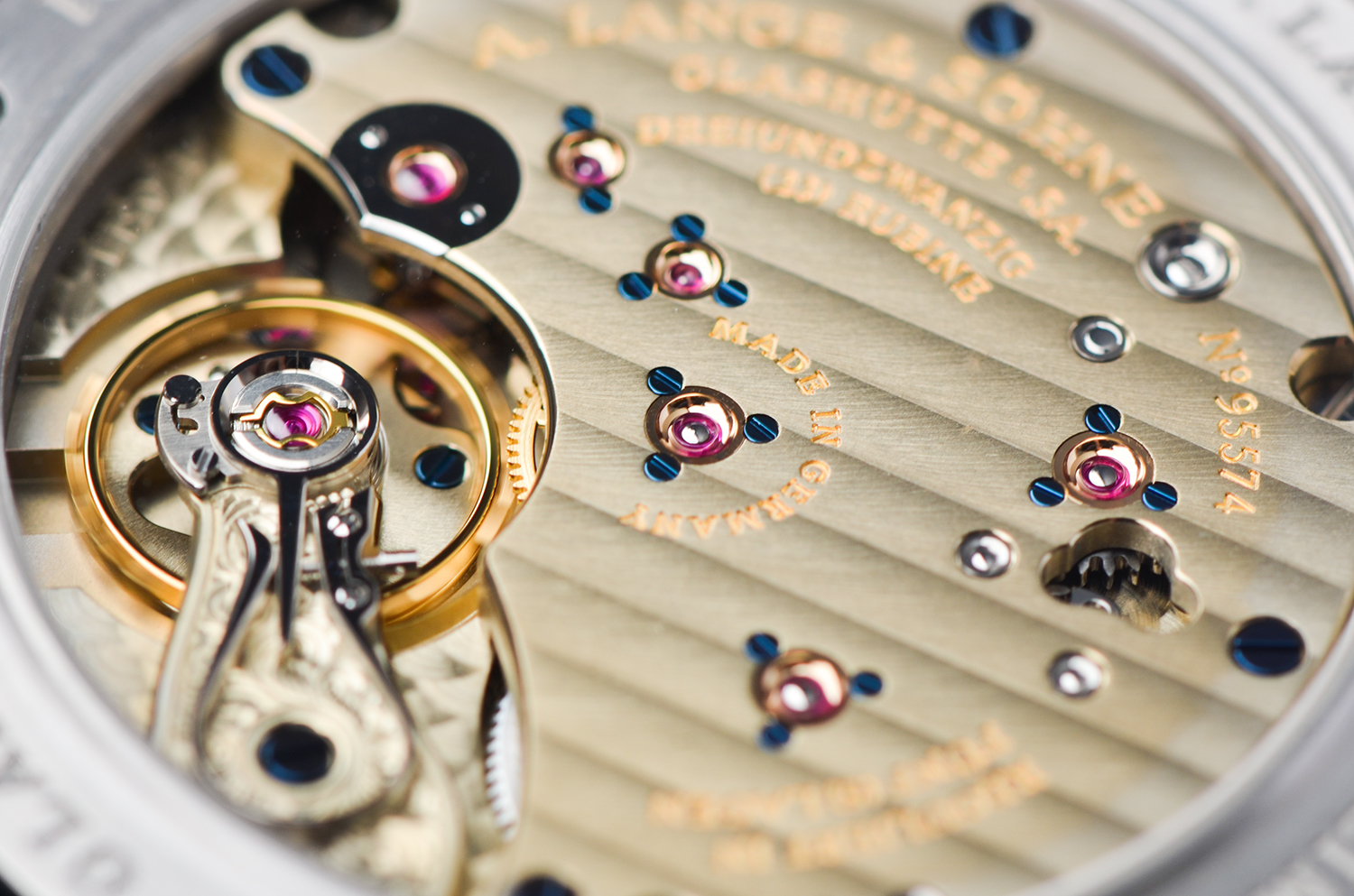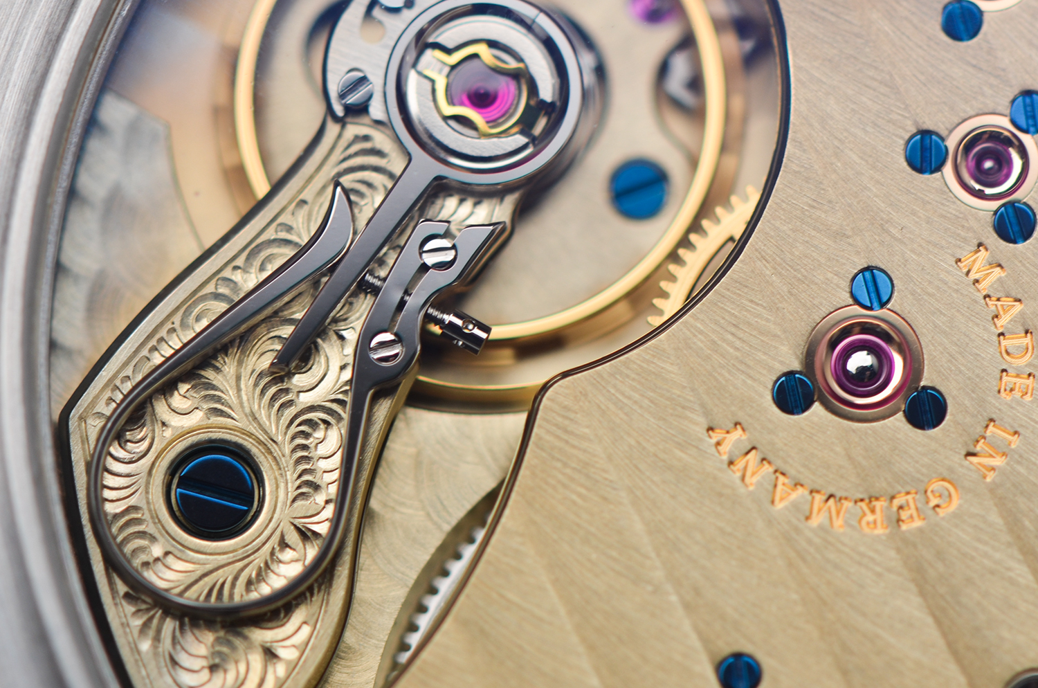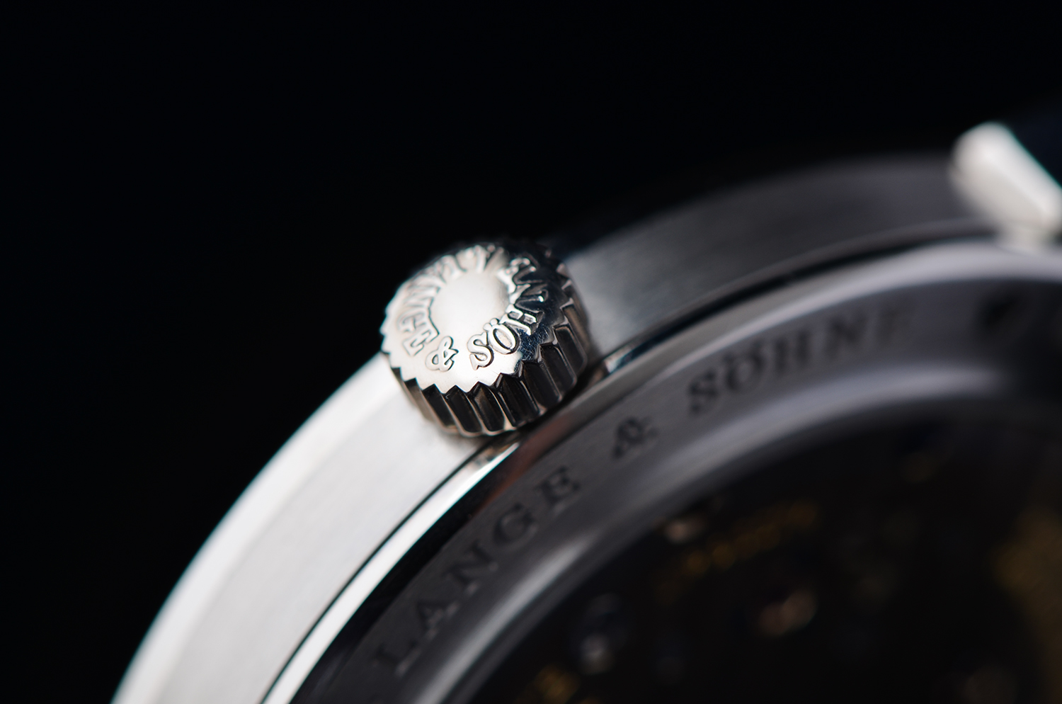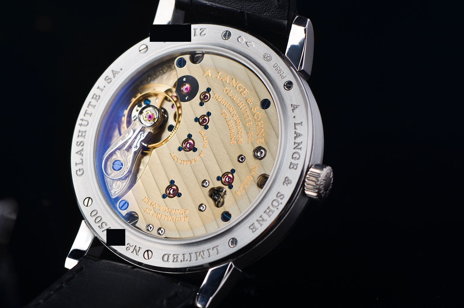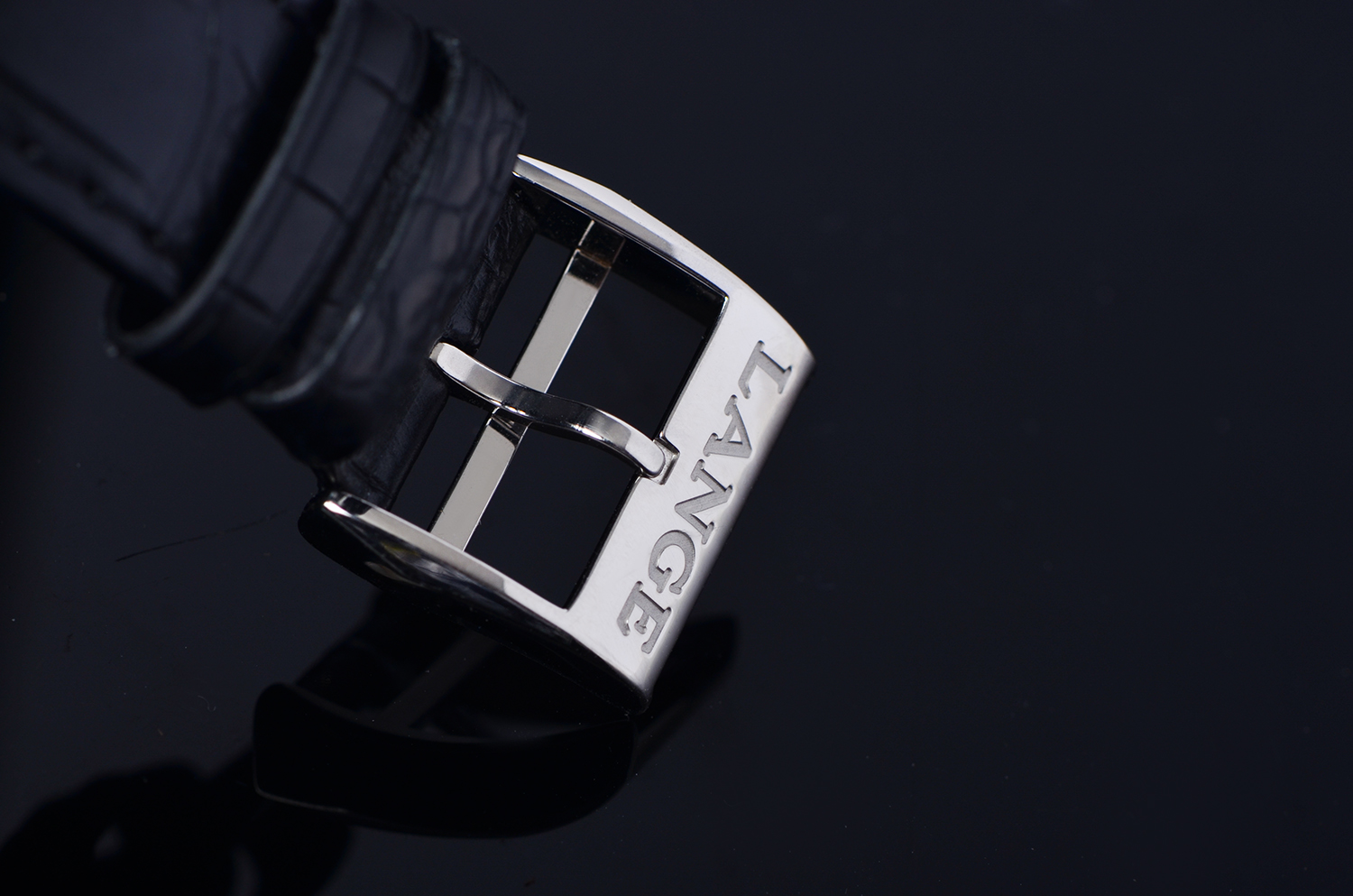直径 40mm、厚度仅 8.9mm,比例恰到好处,佩戴舒适而庄重。透过蓝宝石底盖,朗格 L051.1 手动上链机芯尽显风采:三分之二夹板、手工雕刻摆轮桥板、黄金套筒……每一处细节都凝结着萨克森制表工艺的灵魂。